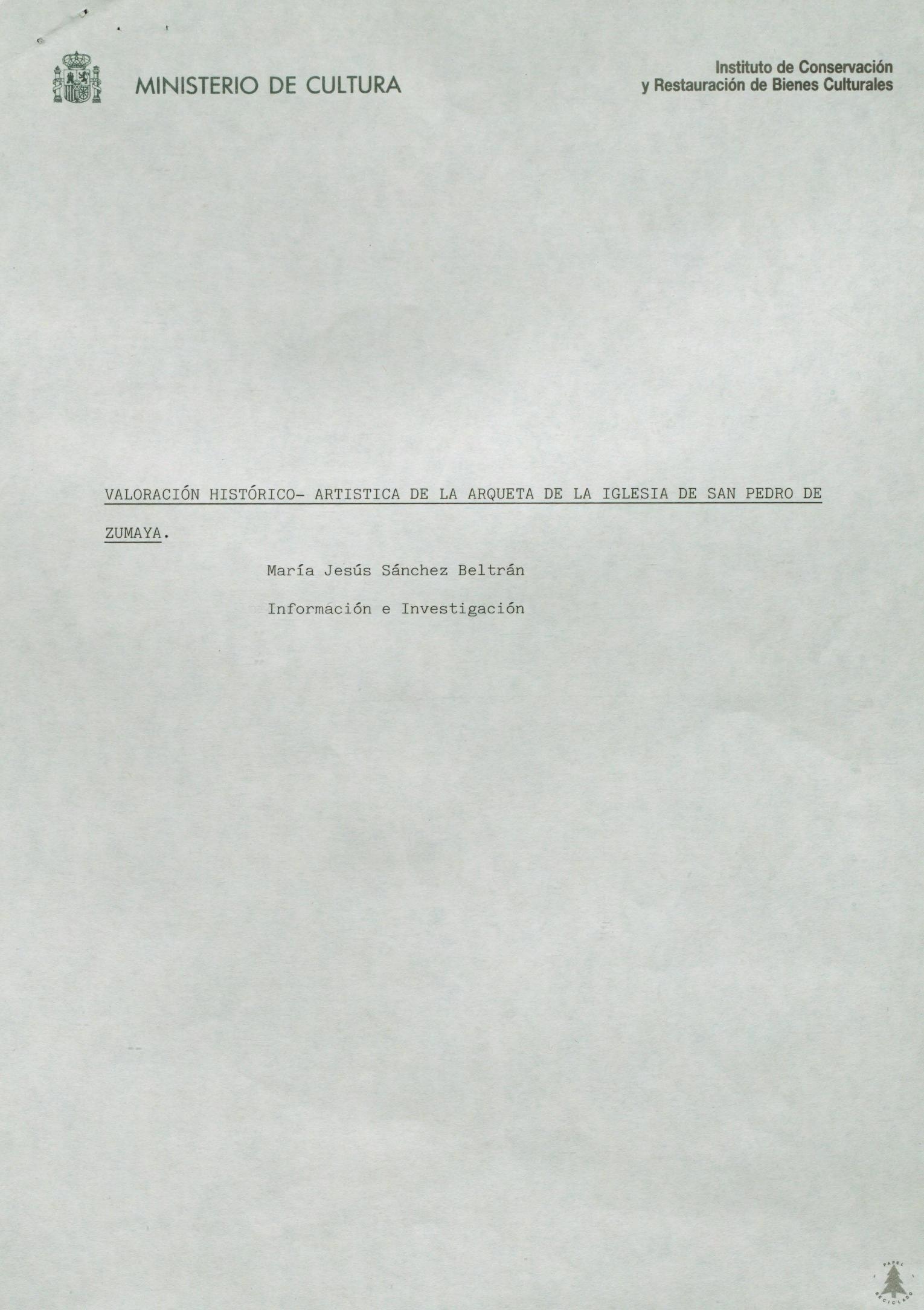 Informe histórico-artístico de una arqueta del paso procesional de Jueves Santo de la Iglesia de San Pedro de Zumaya (Guipúzcoa)