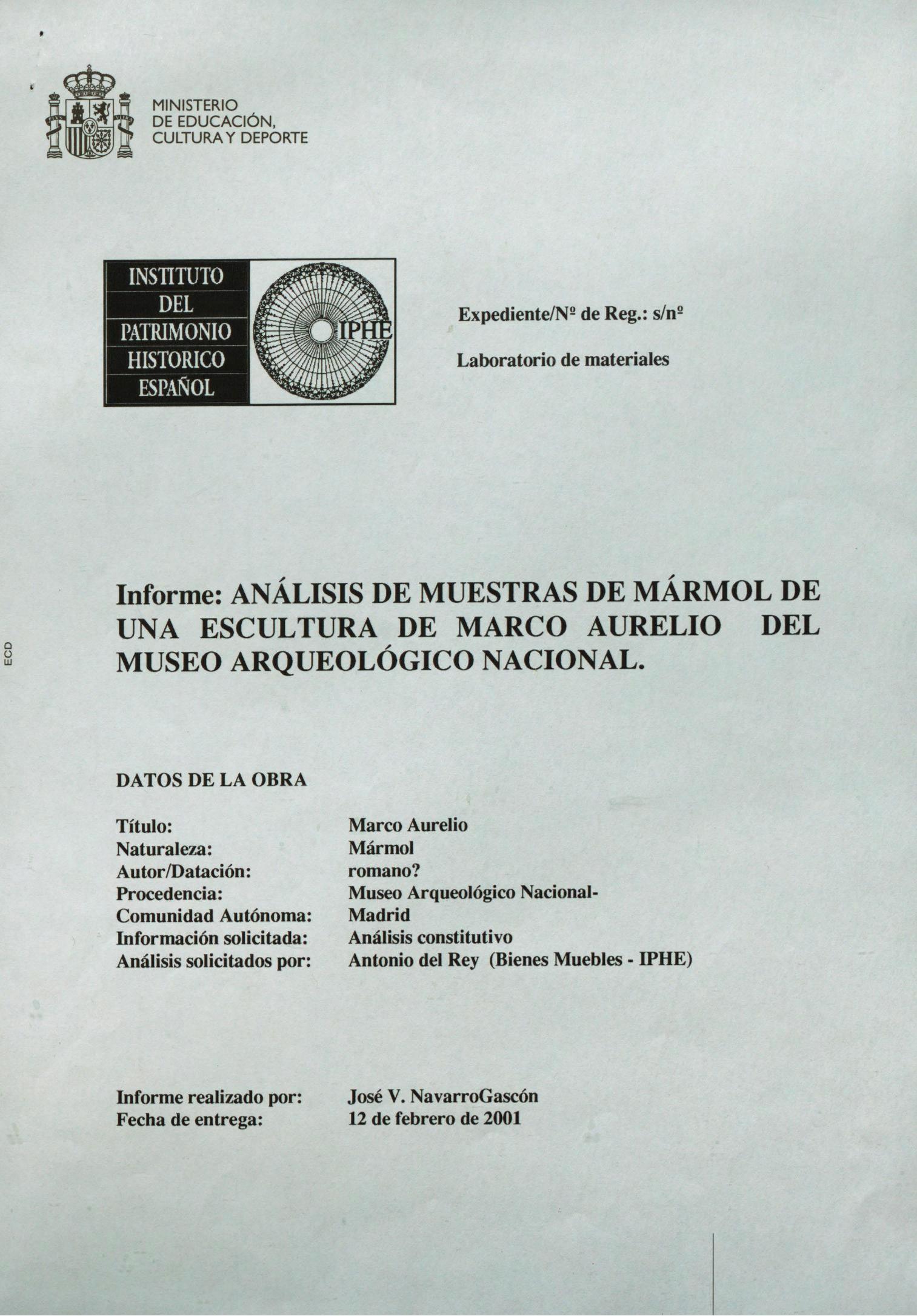 Informe sobre el análisis de muestras de mármol de una escultura de Marco Aurelio, procedente del Museo Arqueológico Nacional (Madrid)