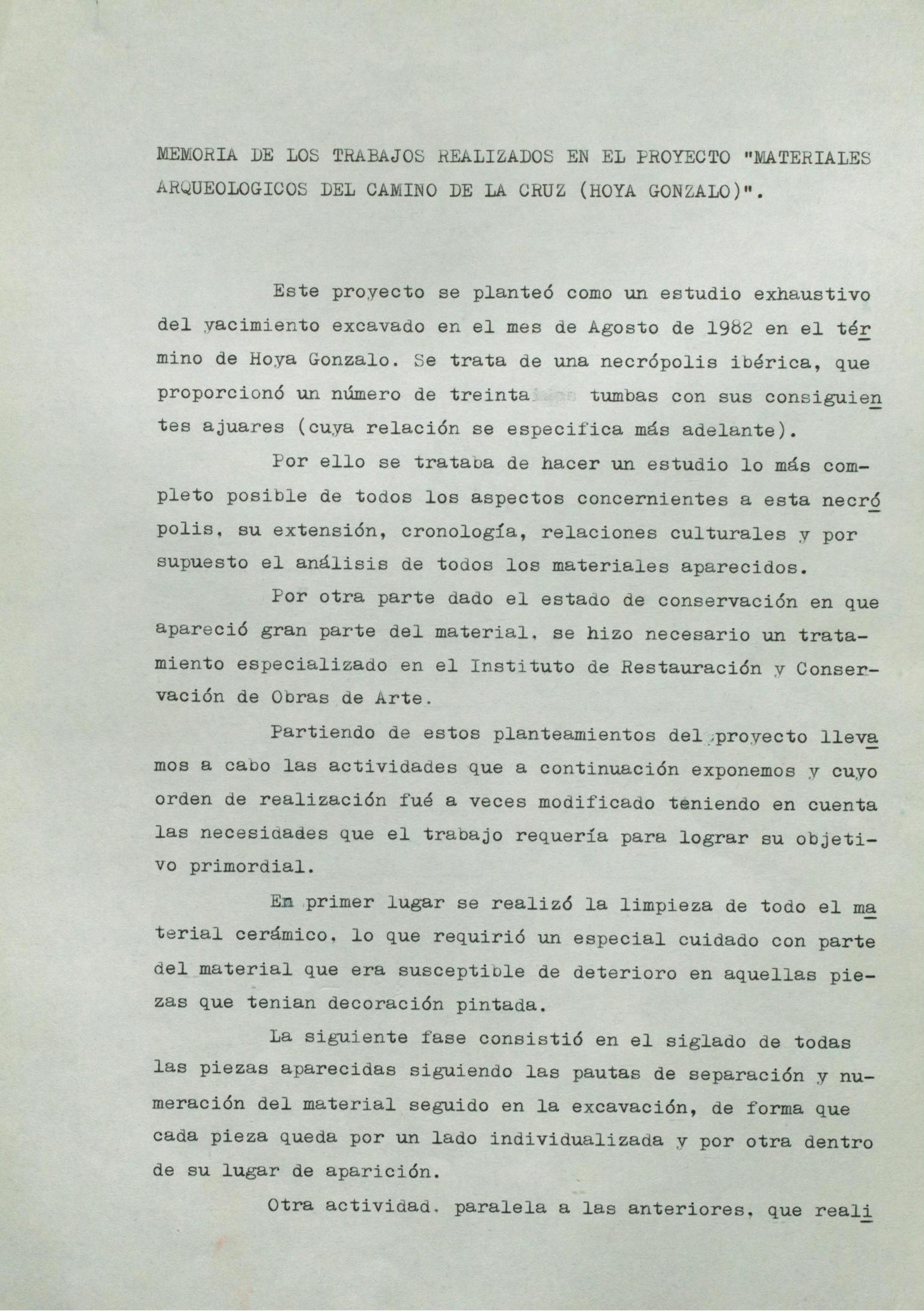 Restauración de materiales arqueológicos de la necrópolis ibérica de Camino de la Cruz de Hoya-Gonzalo, procedentes del Museo Arqueológico Provincial de Albacete