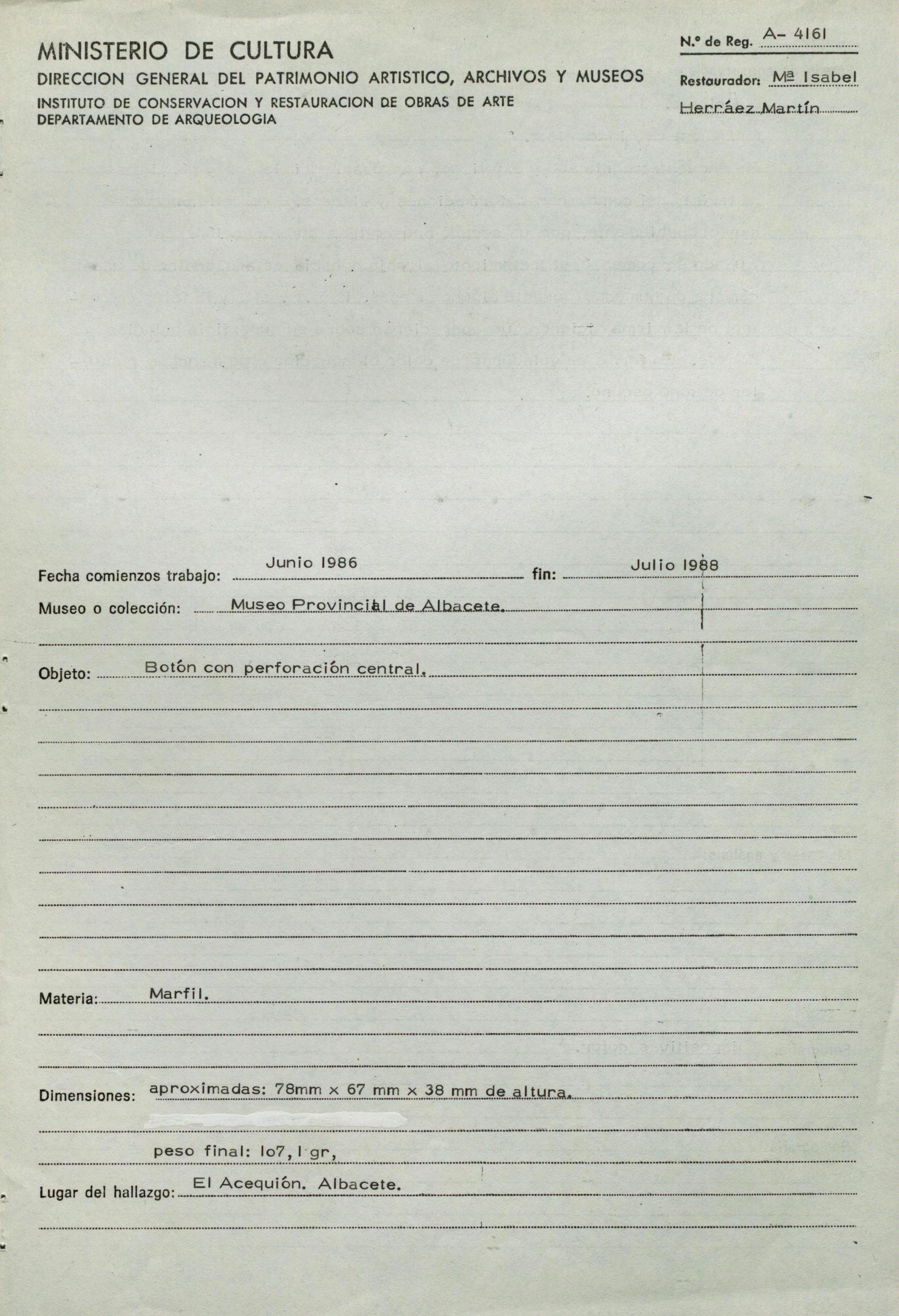Herráez Martín, María Isabel / Restaurador
