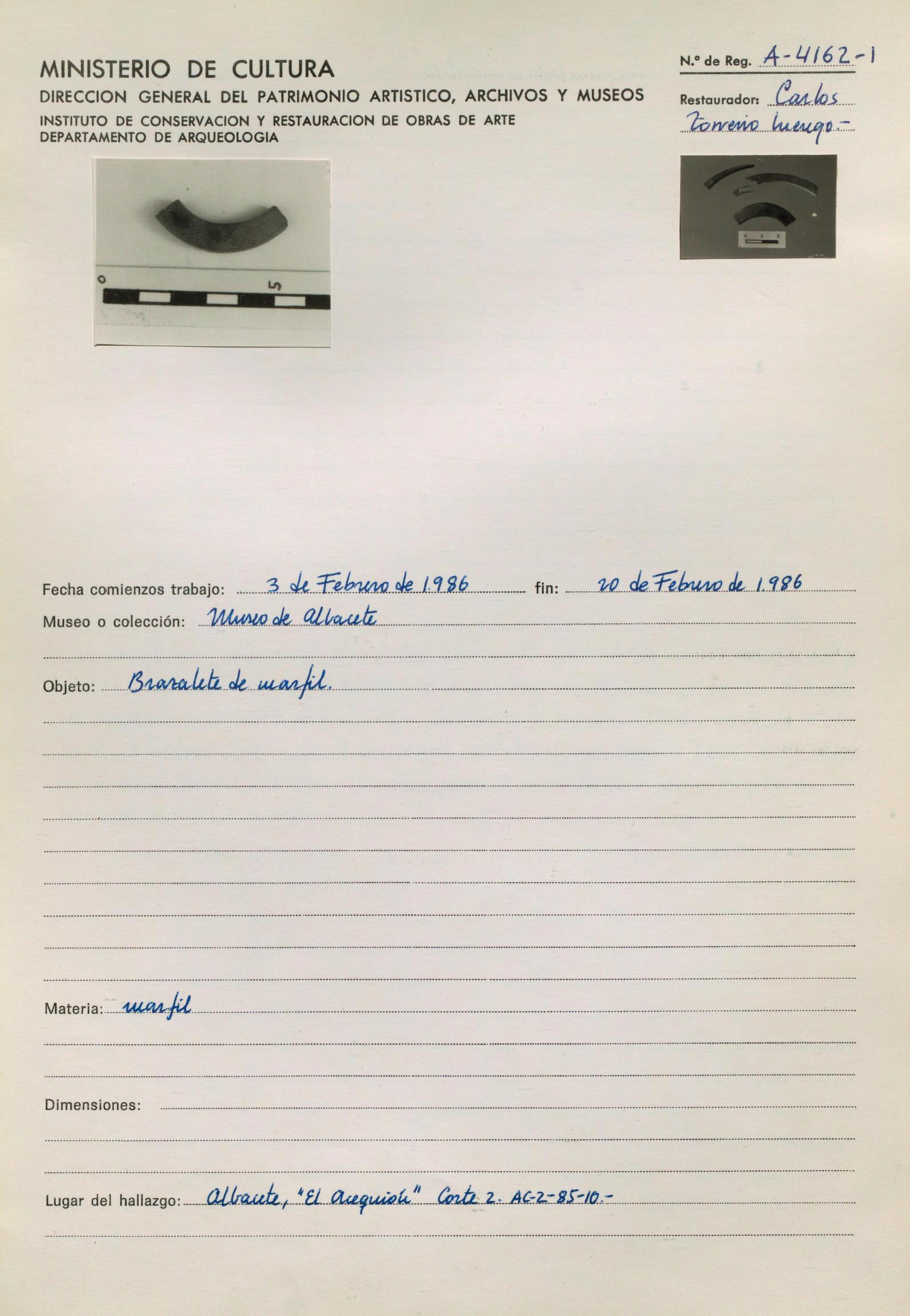 Restauración de piezas arqueológicas de marfil del yacimiento del Acequión, procedentes del Museo Arqueológico Provincial de Albacete