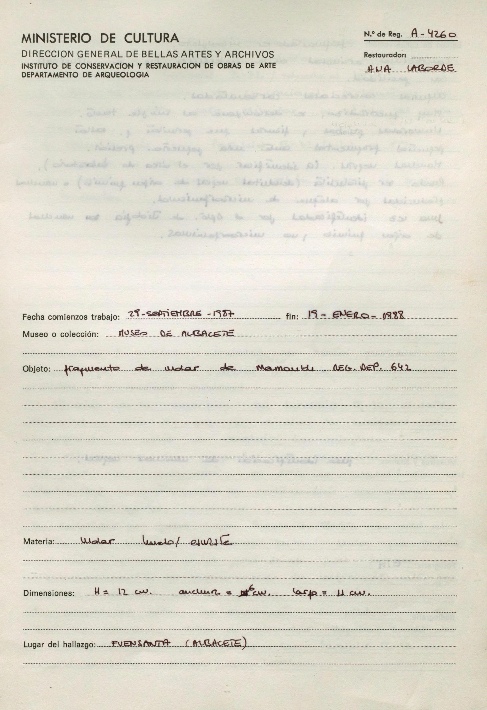 Restauración de un molar y un colmillo de mamífero del yacimiento de Fuensanta, procedentes del Museo Arqueológico Provincial de Albacete