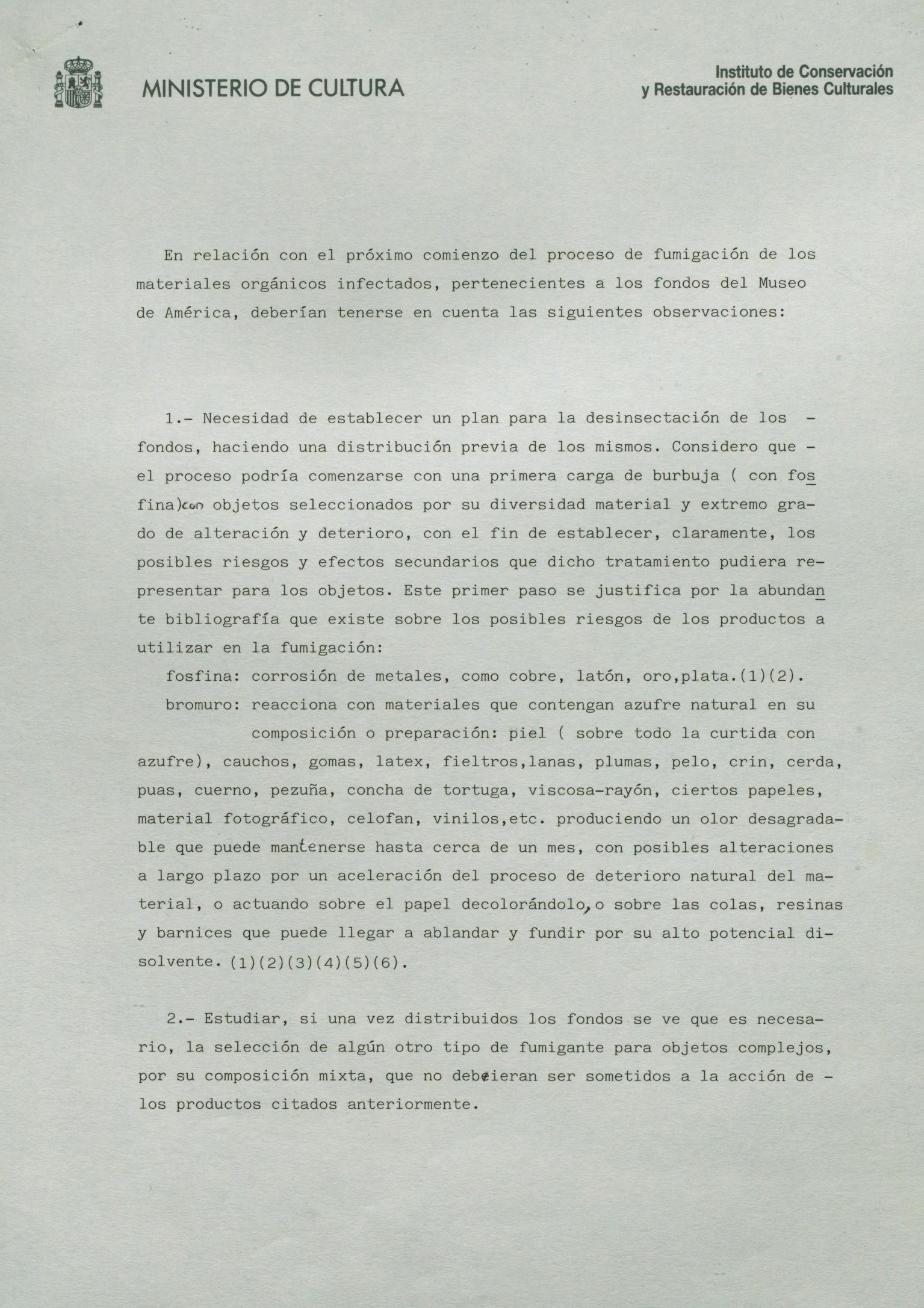 Informe sobre el plan de actuación urgente de restauración de los fondos del Museo de América (Madrid)