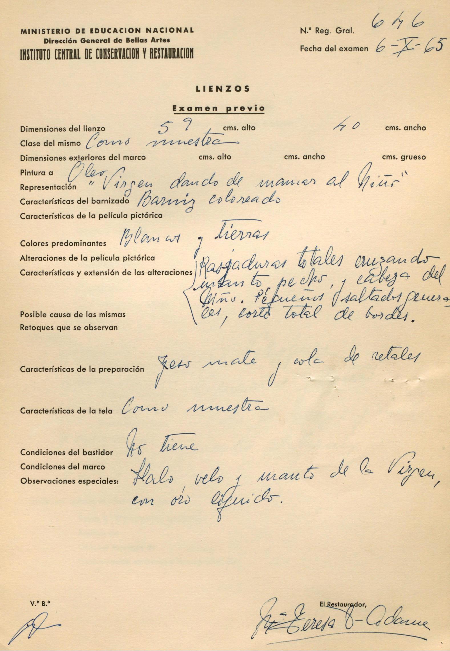 Restauración del lienzo "Virgen dando de mamar al niño", procedente del Museo de América (Madrid)