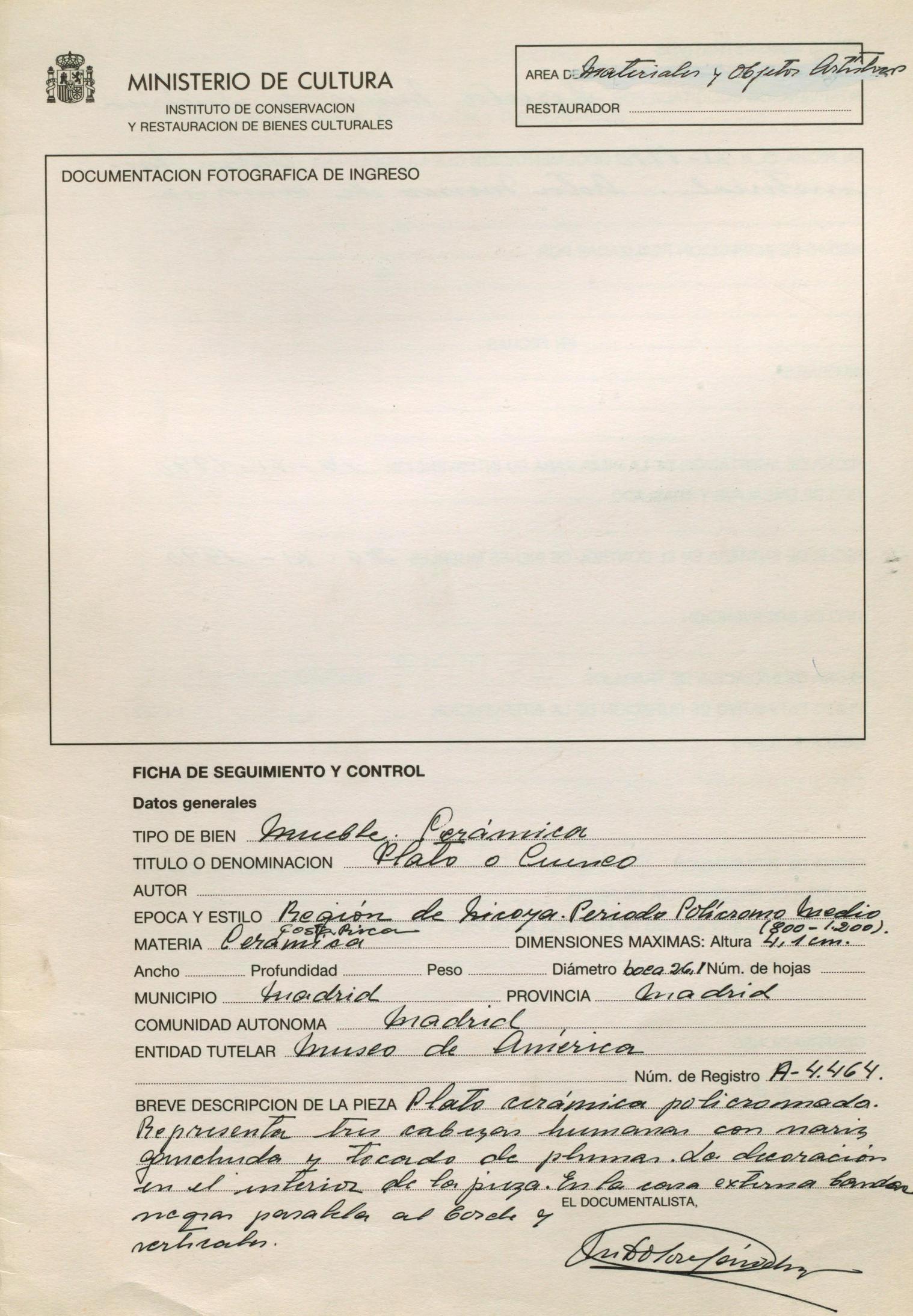 Restauración de una colección de cerámicas prehispánicas, piezas arqueológicas de metal y cerámica de la colección Oñate del siglo XVII, procedentes del Museo de América (Madrid)
