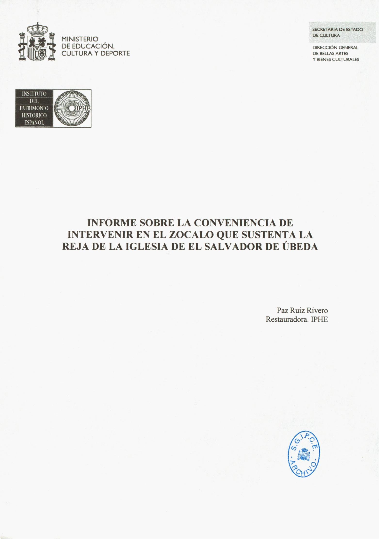Informe de visita para la restauración del zócalo que sustenta la reja de la Iglesia del Salvador de Úbeda (Jaén)