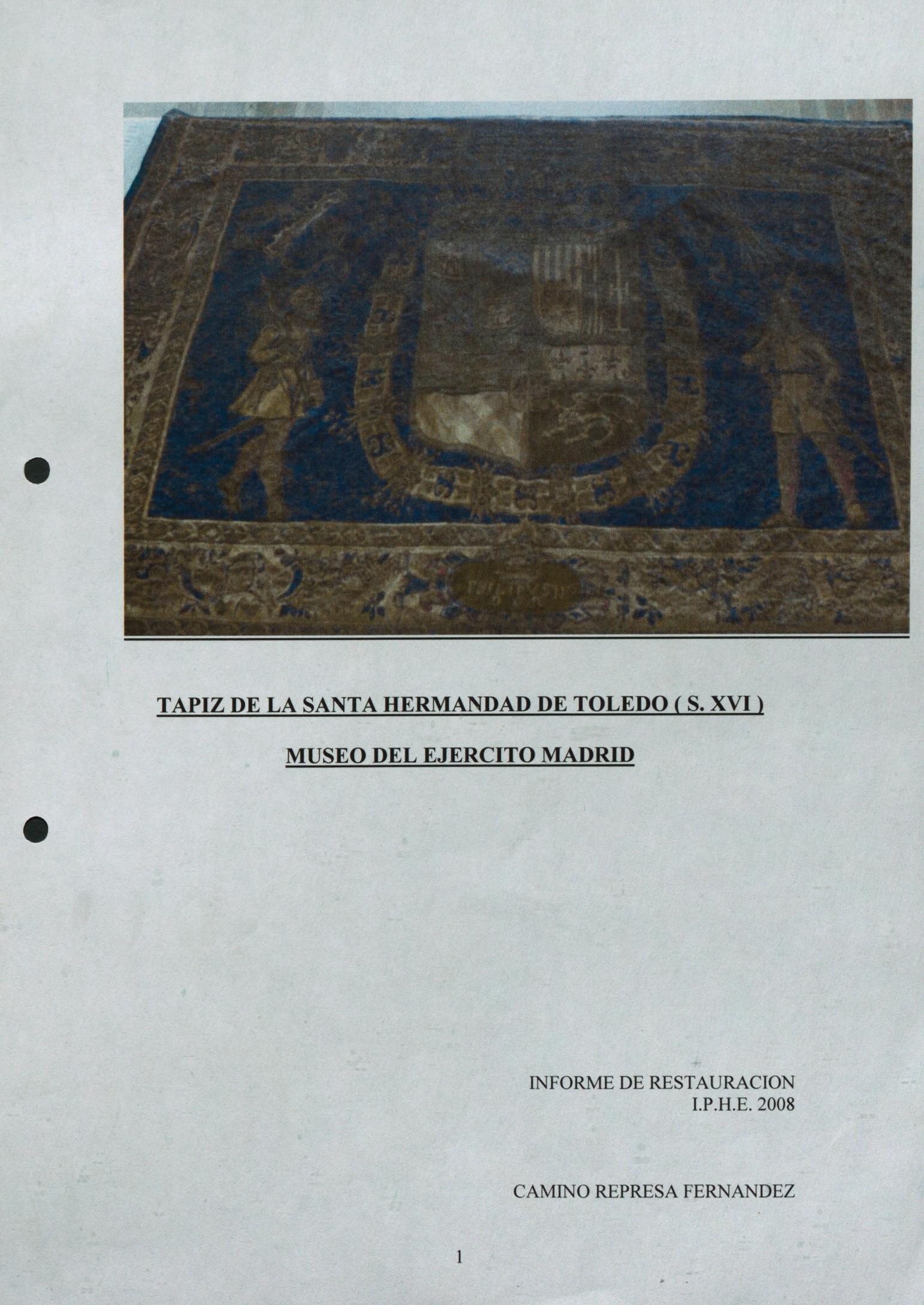 Restauración del "Tapiz de la Santa Hermandad de Toledo" del siglo XVI, procedente del Museo del Ejército (Madrid)