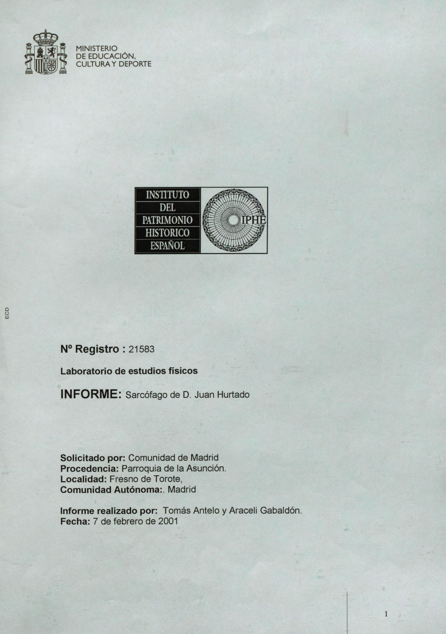 Restauración del sarcófago, con restos orgánicos y de papel, de Diego Hurtado de Mendoza, procedentes de la Iglesia parroquial de Nuestra Señora de la Asunción Fresno de Torote (Madrid)