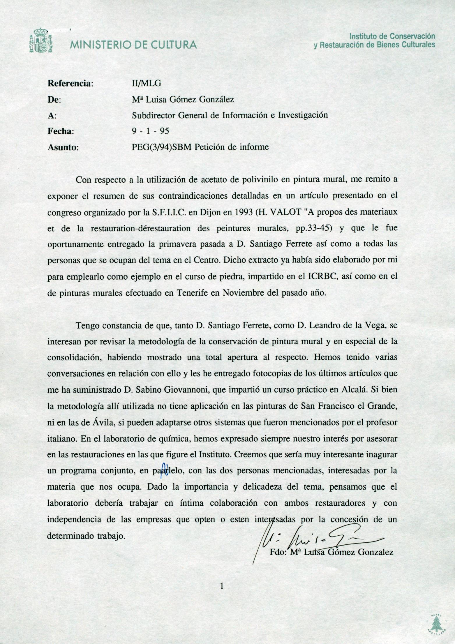 Informe sobre la utilización del acetato de polivinilo en la restauración de las pinturas murales de San Francisco el Grande en Madrid