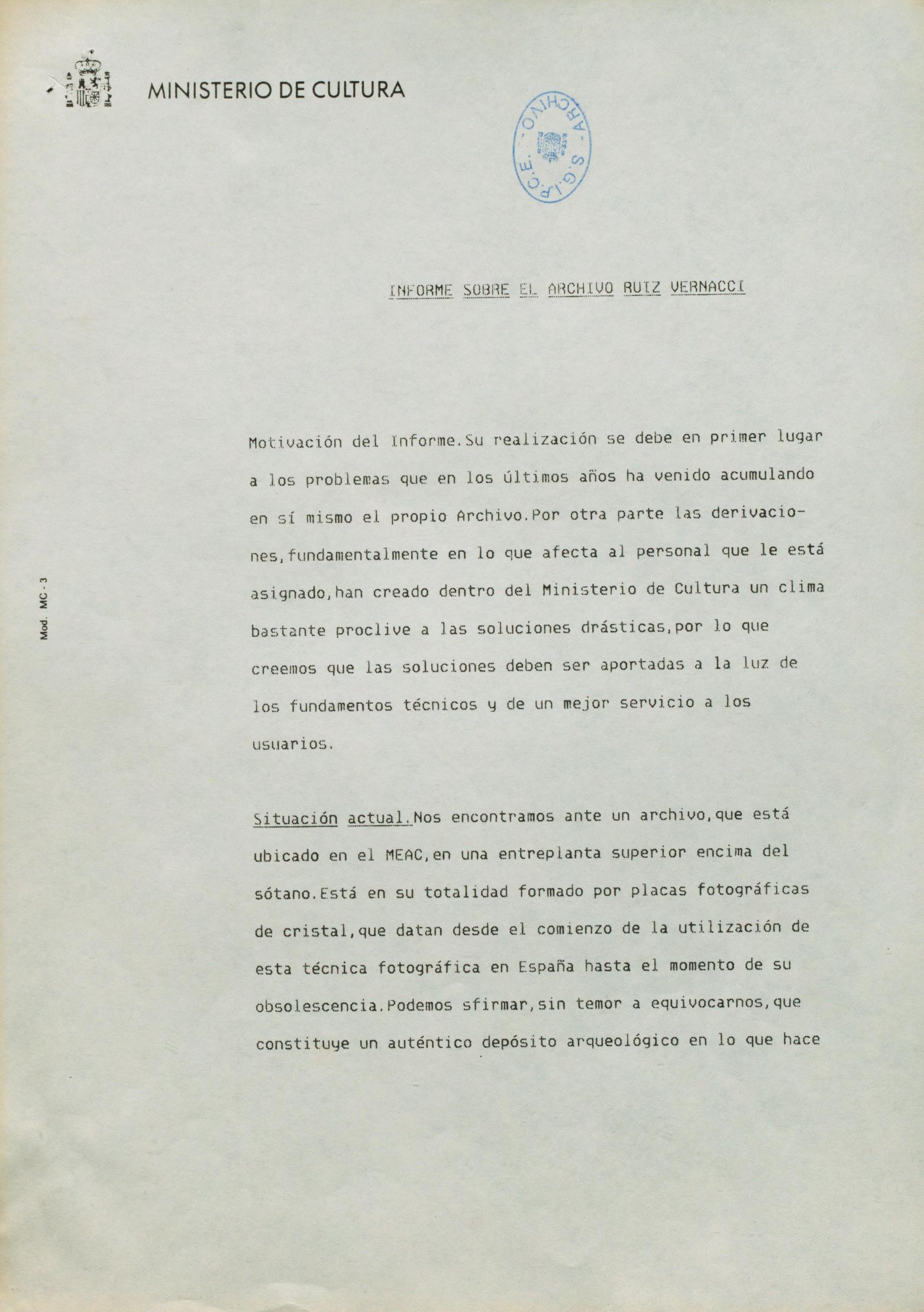 Informe sobre el estado de conservación del Archivo Ruiz-Vernacci