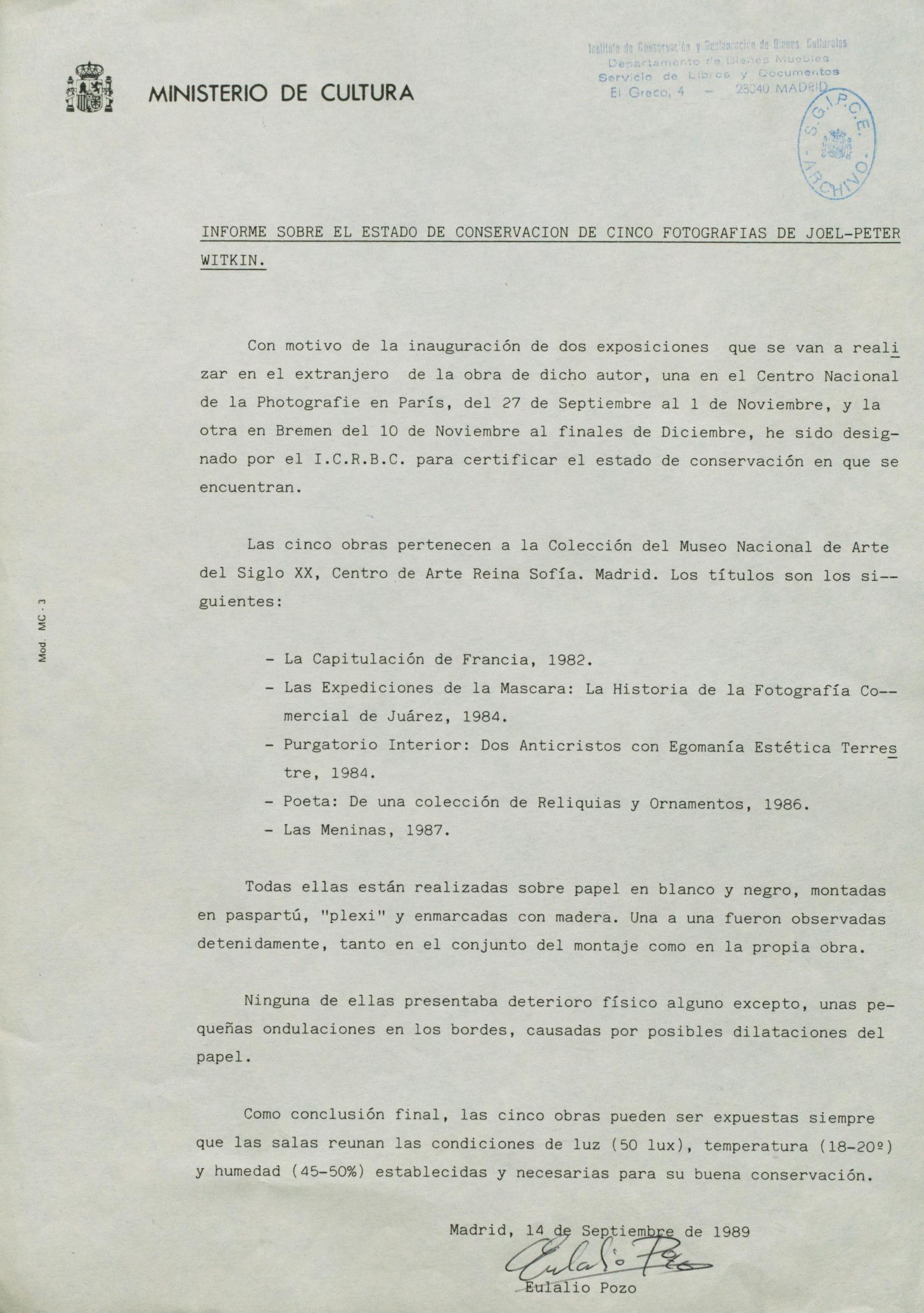 Informe sobre la conservación de cinco fotografías de Joel-Peter Witkin
