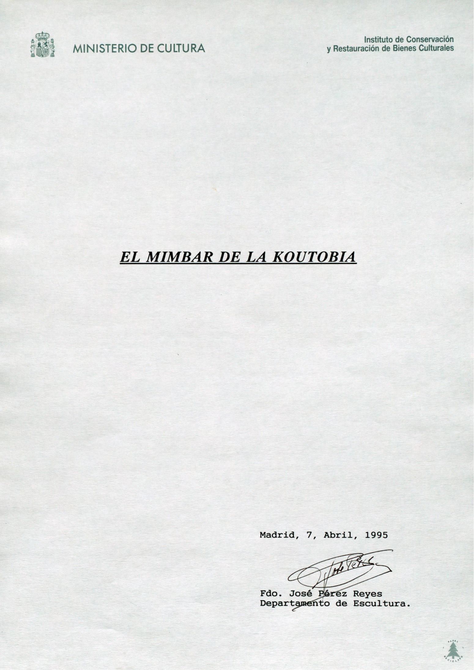 Informe propuesta para la restauración del Mimbar de la Koutobia