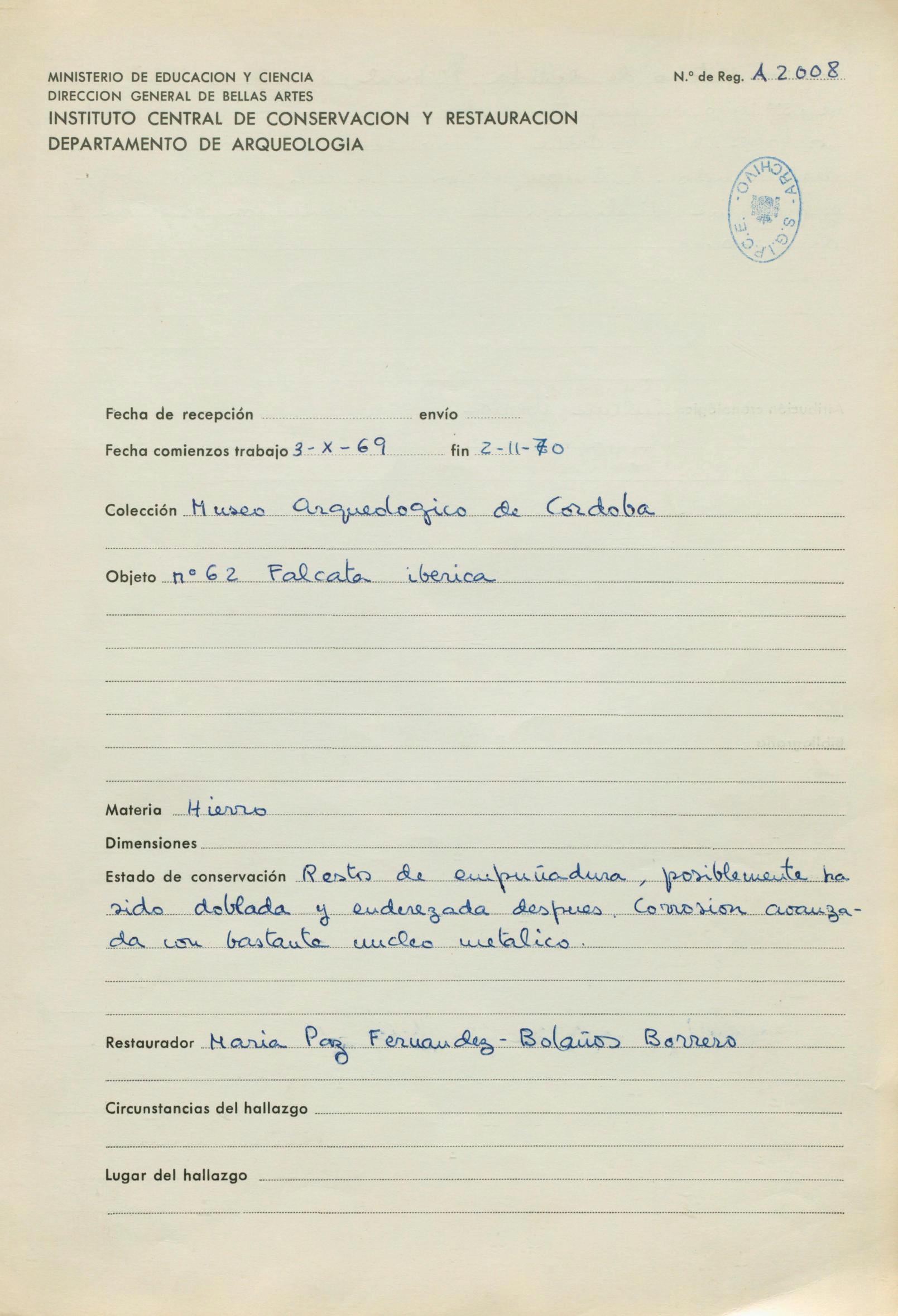 Fernández-Bolaños Borrero, María de la Paz / Restaurador