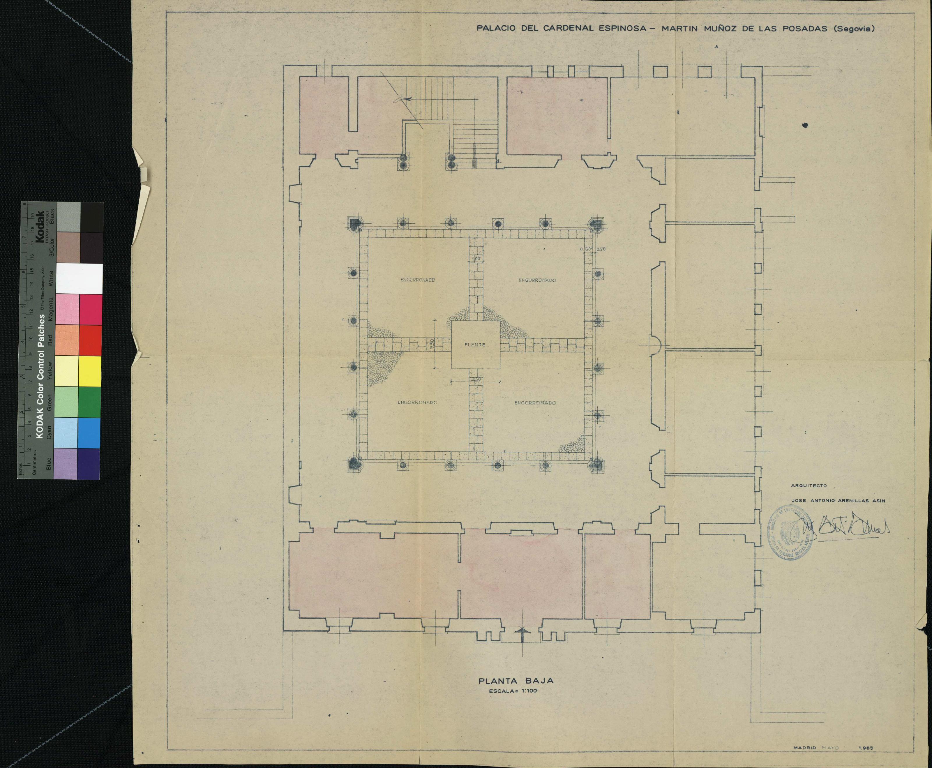 Palacio del Cardenal Espinosa.: Planta baja. (sobre la que se han coloreado dependencias).
