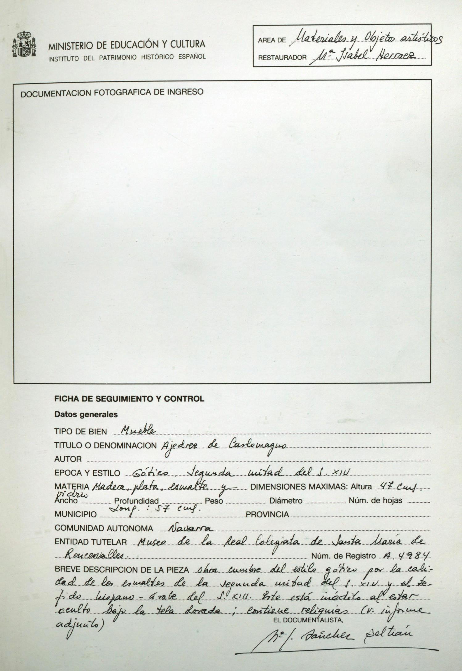 Herráez Martín, María Isabel / Restaurador