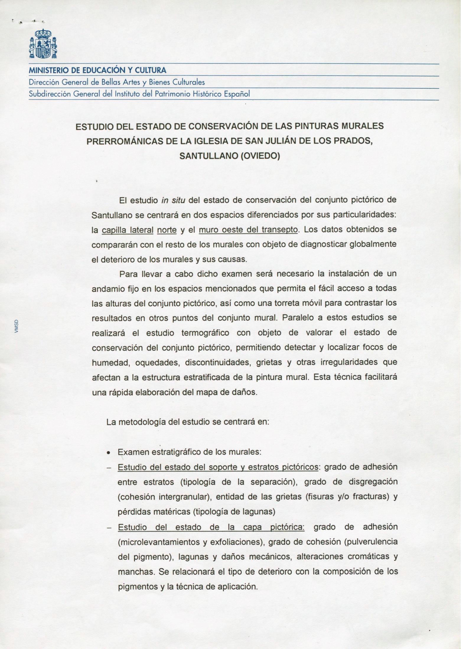 Informe sobre la conservación de las pinturas murales prerrománicas de la Iglesia de San Julián de los Prados o Santullano (Oviedo)