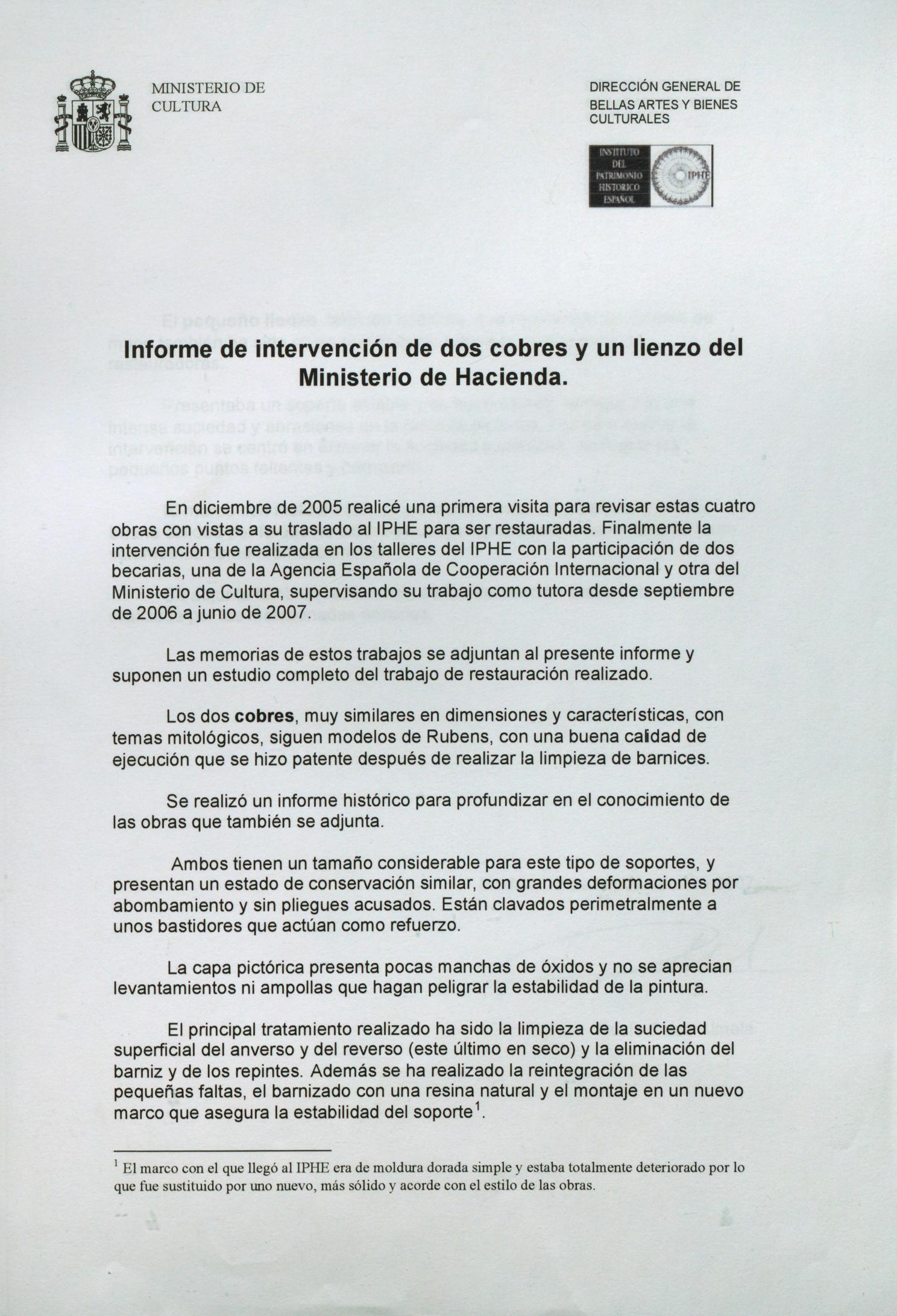 Restauración de dos pinturas sobre cobre y una sobre lienzo procedentes del Ministerio de Economía y Hacienda (Madrid)