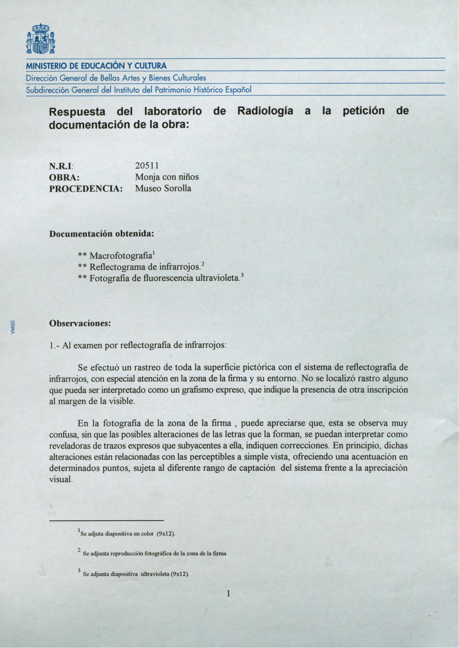 Informe sobre el análisis de radiología del cuadro "Monja con niños", de Joaquín Sorolla, del Museo Sorolla (Madrid)