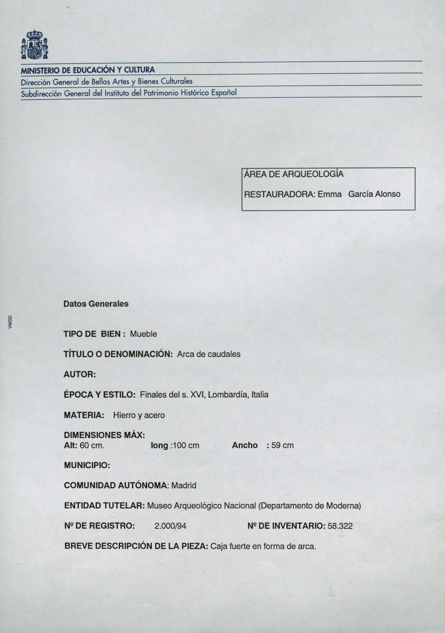 Restauración de una caja o arca de caudales del siglo XVI, procedente del Museo Arqueológico de Madrid