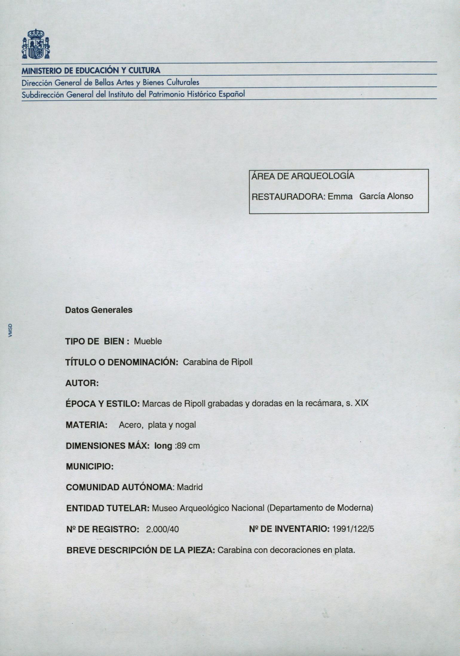Restauración de una carabina de Ripoll, de acero, plata y nogal, procedente del Museo Arqueológico Nacional (Madrid)