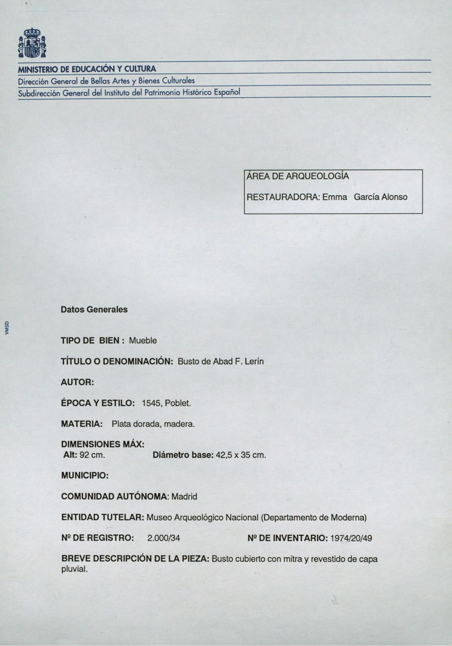 Restauración del busto de plata dorada y madera del Abad F. Lerín, propiedad del Museo Arqueológico de Madrid