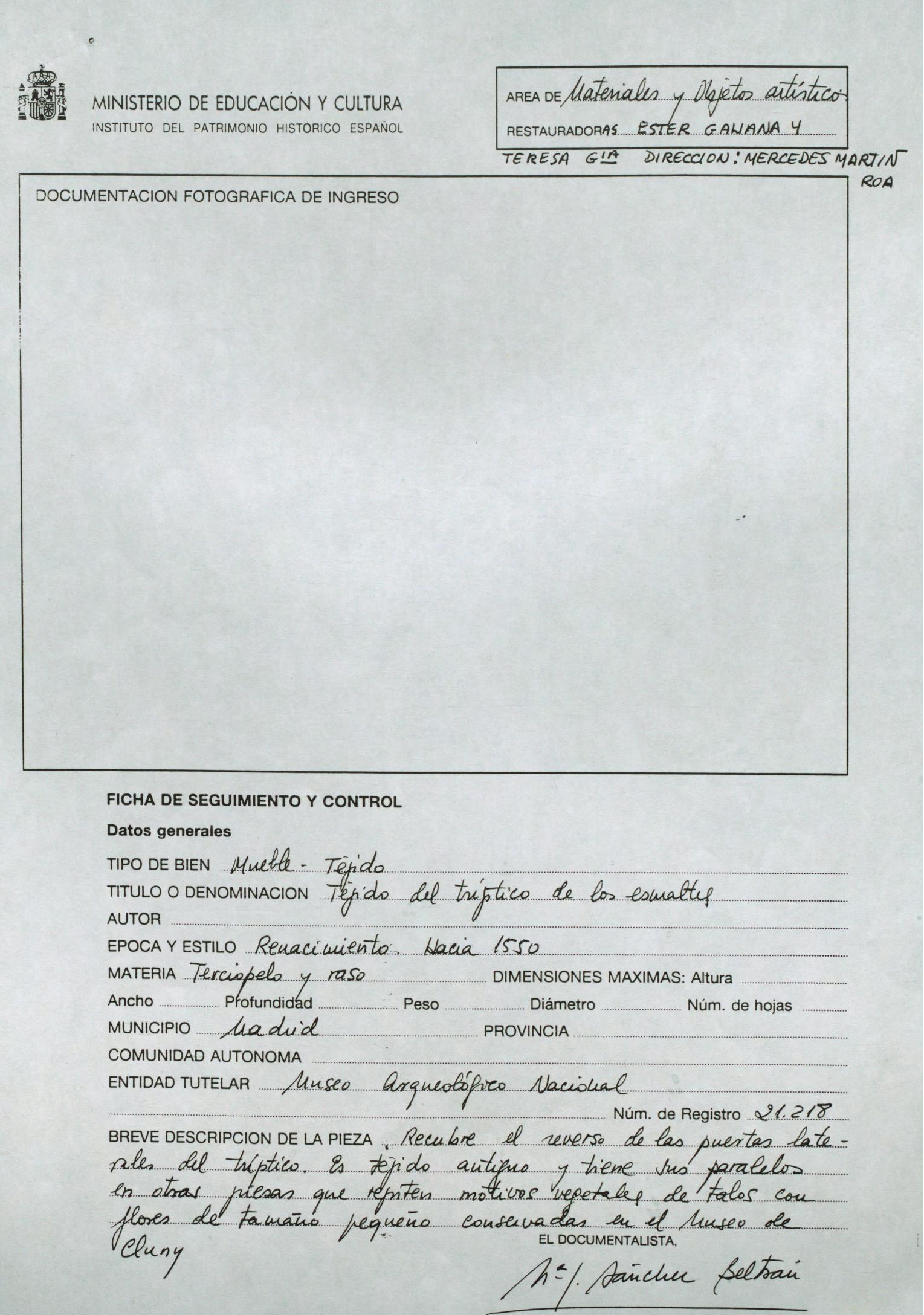 Restauración de un tríptico de esmaltes de Limoges y restos de tejido que lo acompañan, procedentes del Museo Arqueológico Nacional (Madrid)
