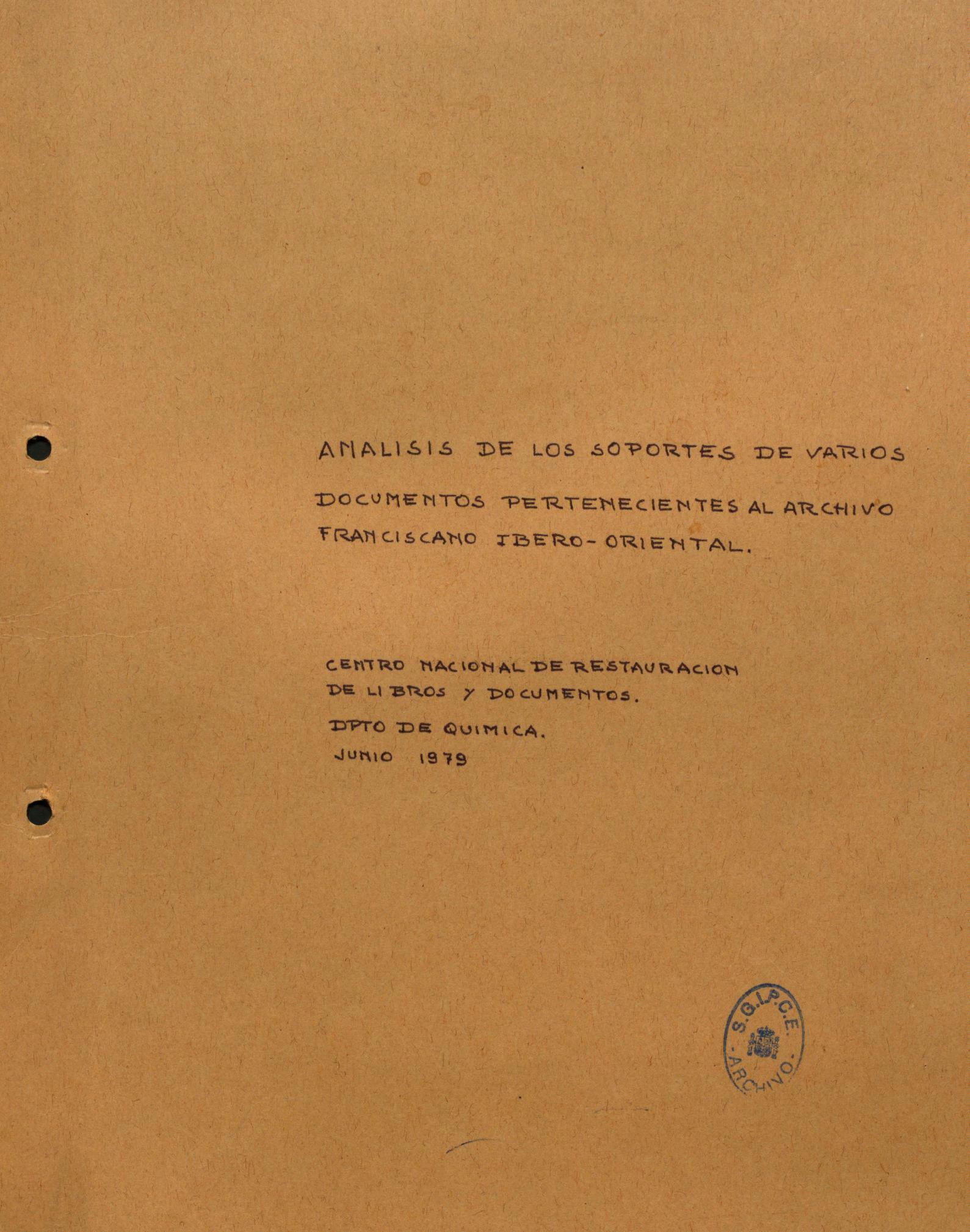 Informe de análisis del químico de soportes de documentos pertenecientes al Archivo Franciscano Ibero - Oriental (Madrid)