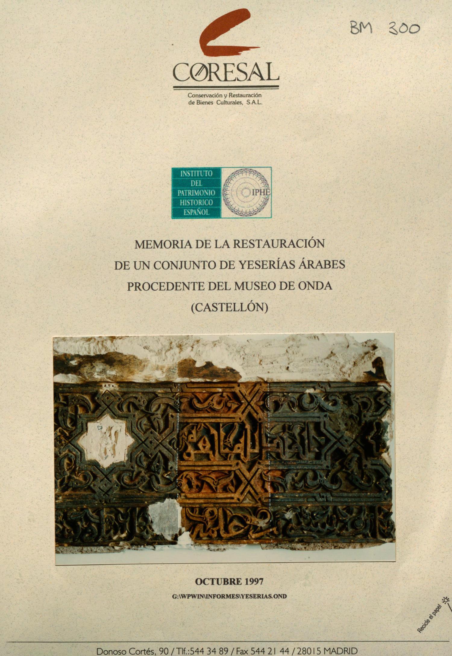 Restauración de un conjunto de yeserías árabes procedentes del Museo de Onda (Castellón)
