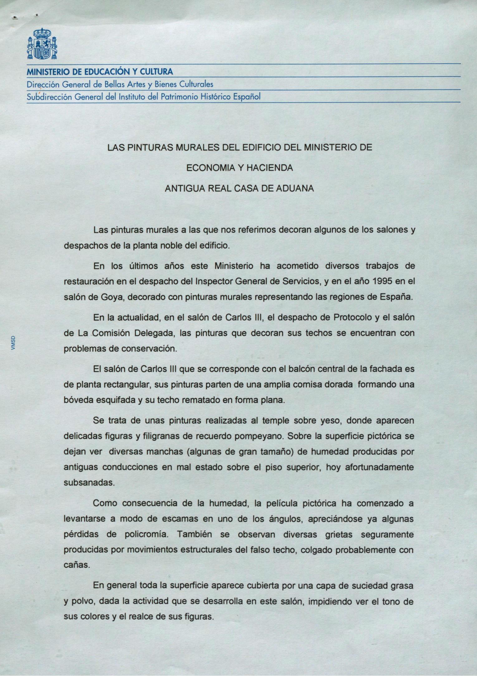 Restauración de las pinturas del techo de las salas de la Antigua Casa de Aduanas de Madrid, sede del Ministerio de Hacienda