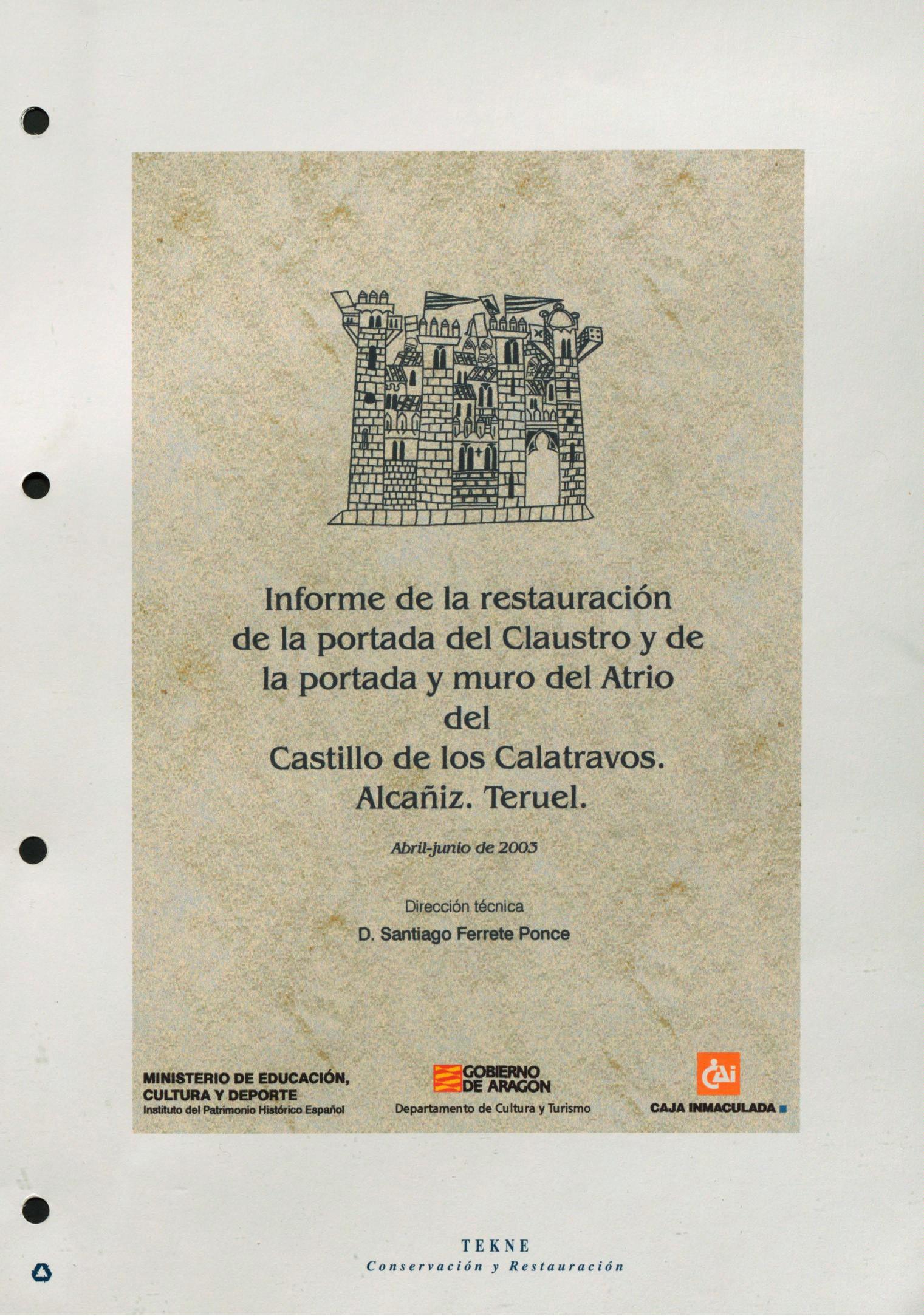 Restauración de la portada del claustro y de la portada del muro del atrio del Castillo de los Calatravos de Alcañiz (Teruel)