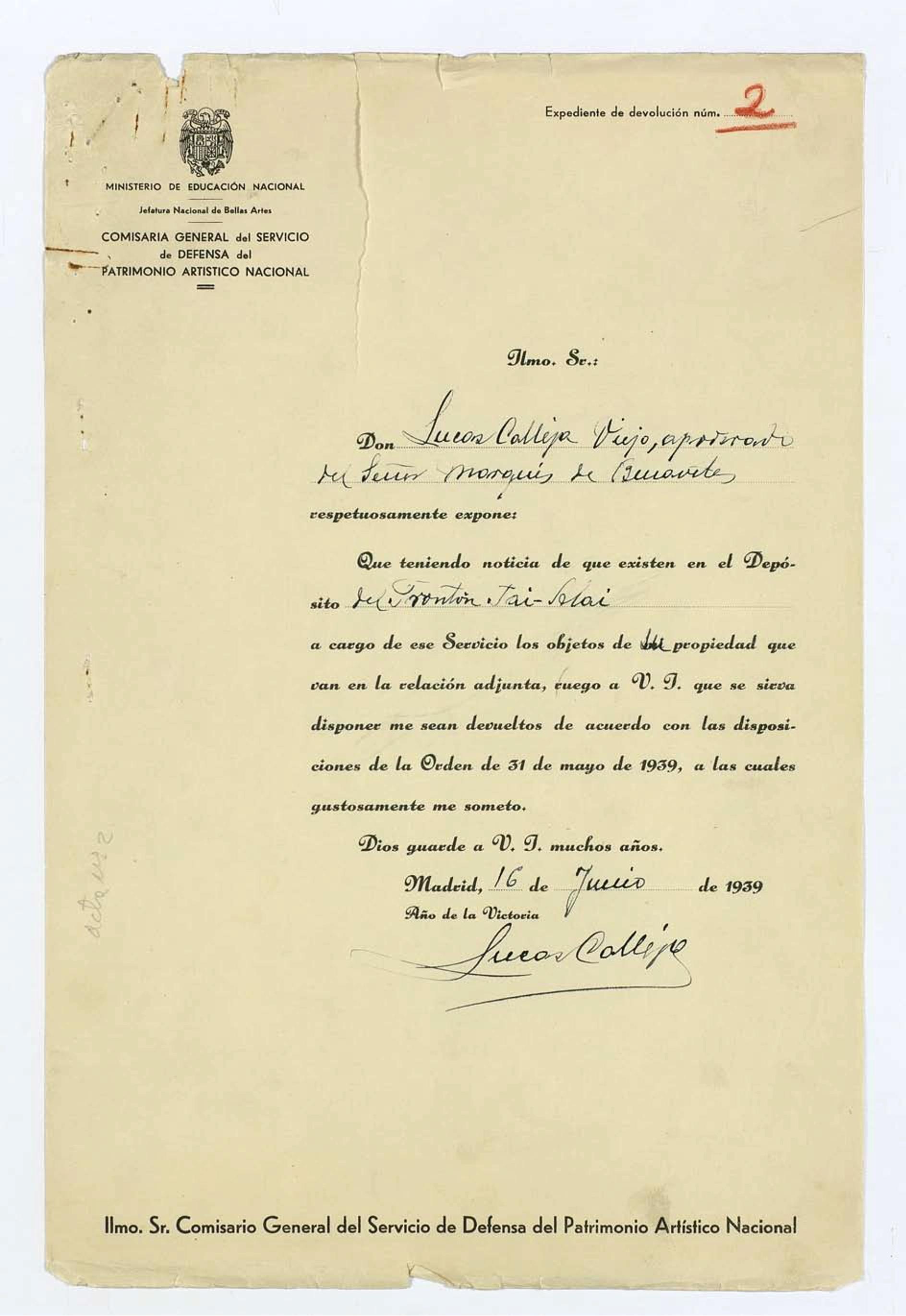Expedientes de devolución de obras de arte