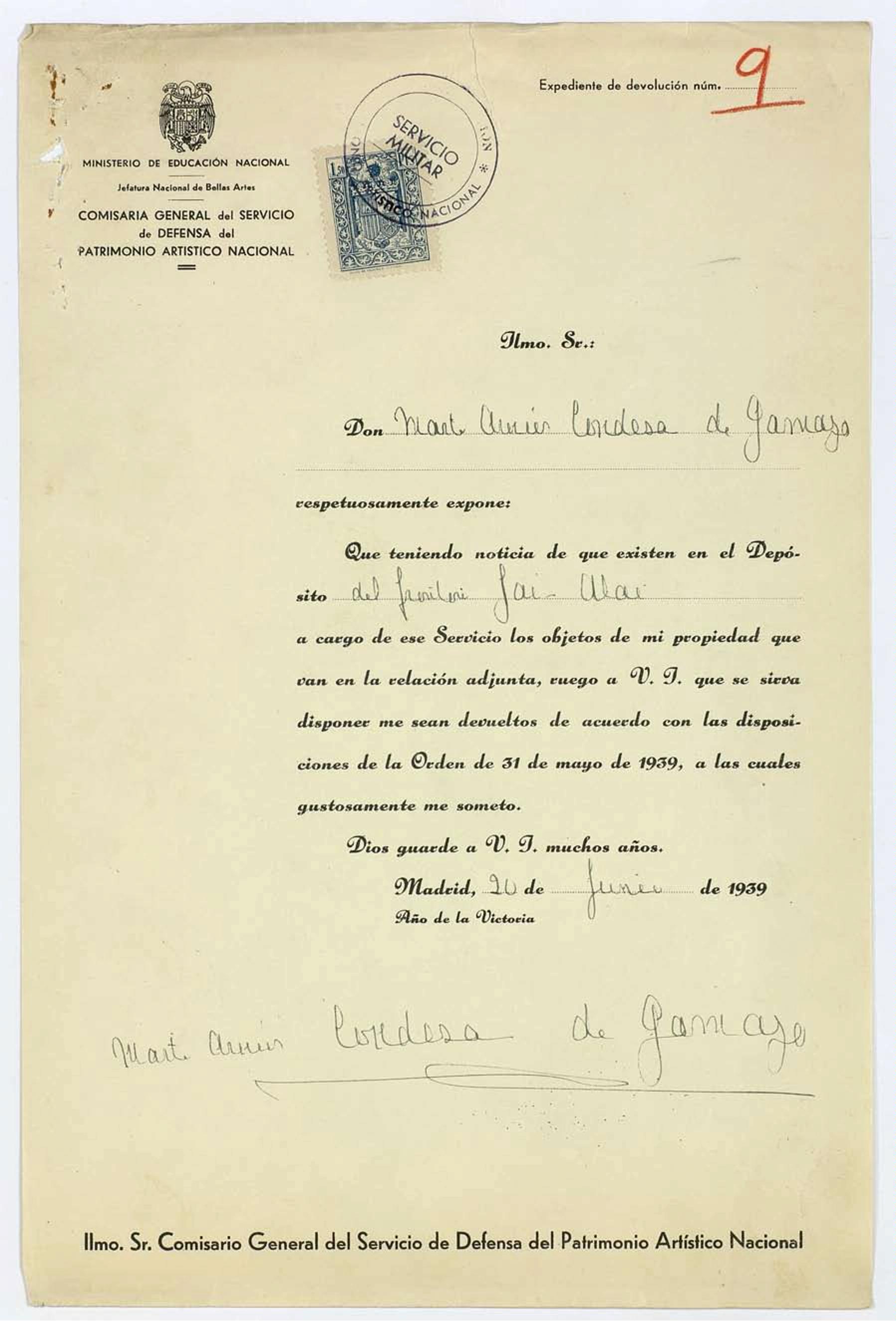 Expediente de devolución de Marta Arnús y Gayón, condesa de Gamazo