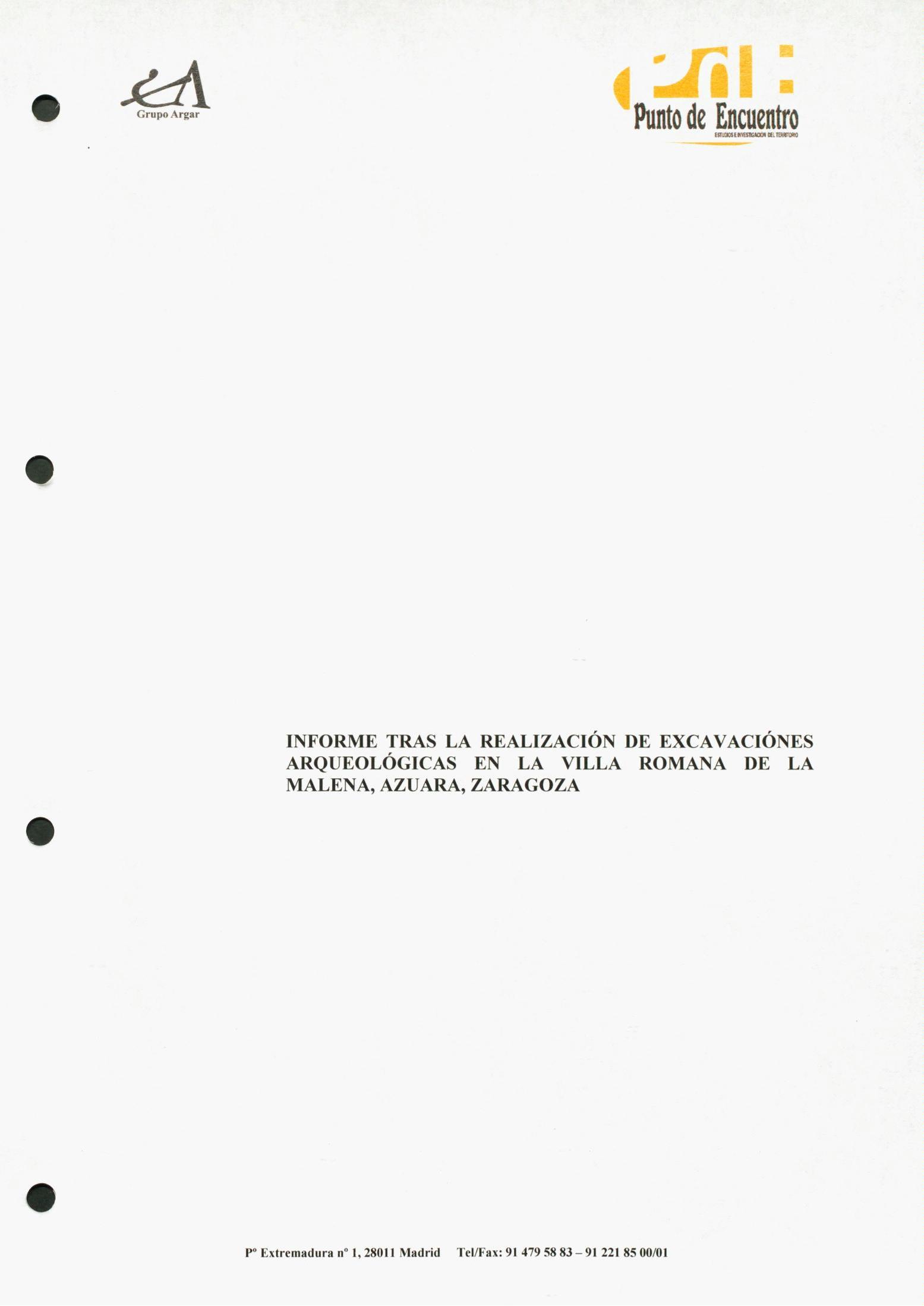 Informe de las excavaciones arqueológicas realizadas en la villa romana de La Malena en Azuara (Zaragoza)