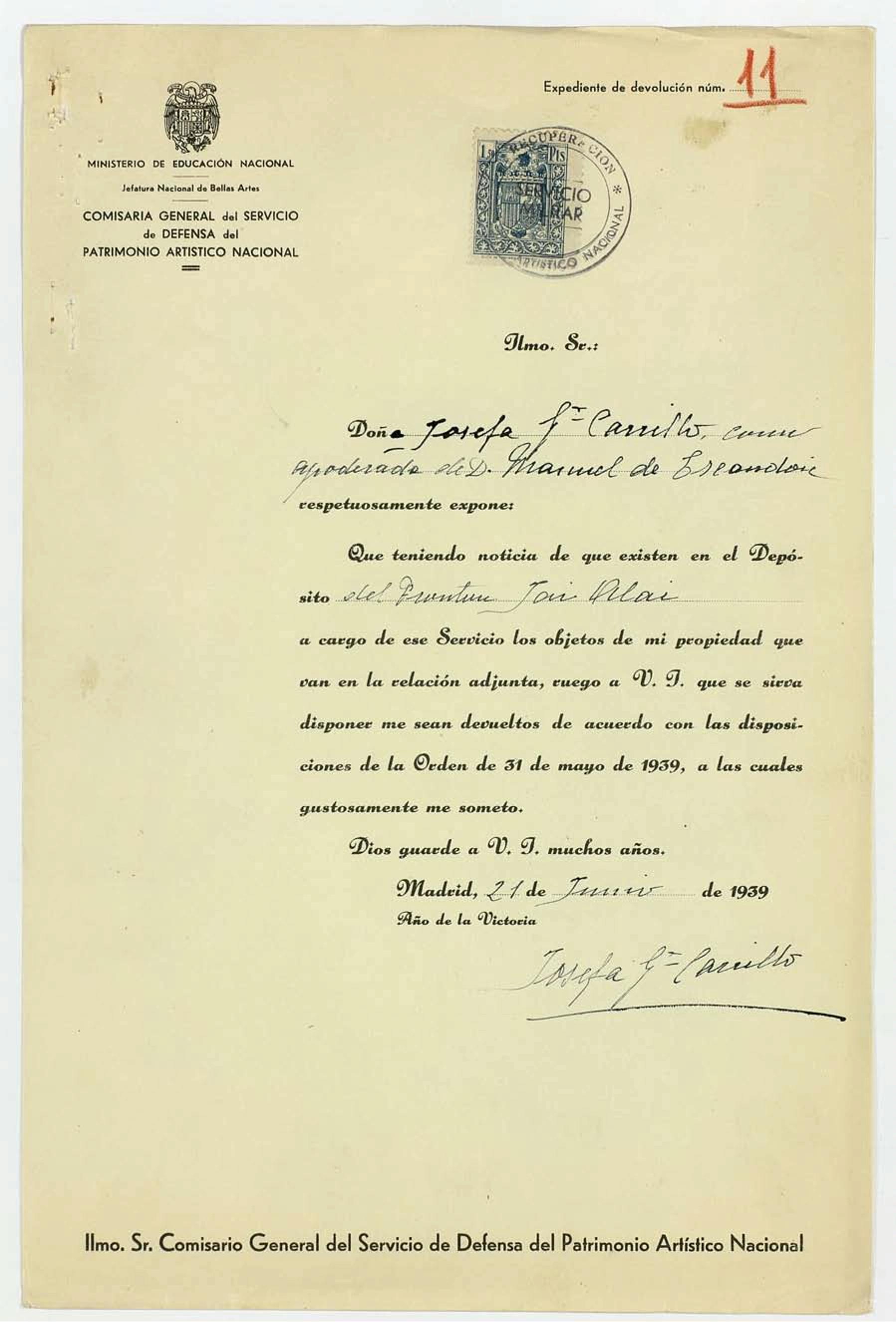 Expediente de devolución de Manuel Escandón y Salamanca, marqués de Villavieja
