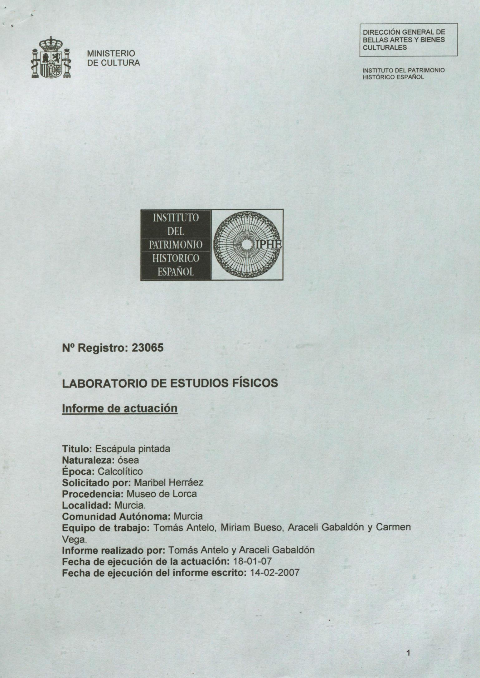 Restauración de una escápula pintada, del periodo calcolítico, procedente del Museo Arqueológico de Lorca (Murcia)
