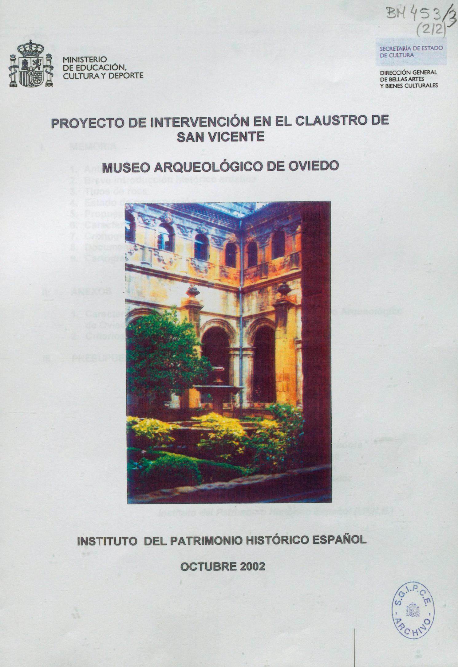 Informe sobre el proyecto de restauración de los materiales pétreos en el claustro del Monasterio de San Vicente del Museo Arqueológico de Oviedo (Asturias)