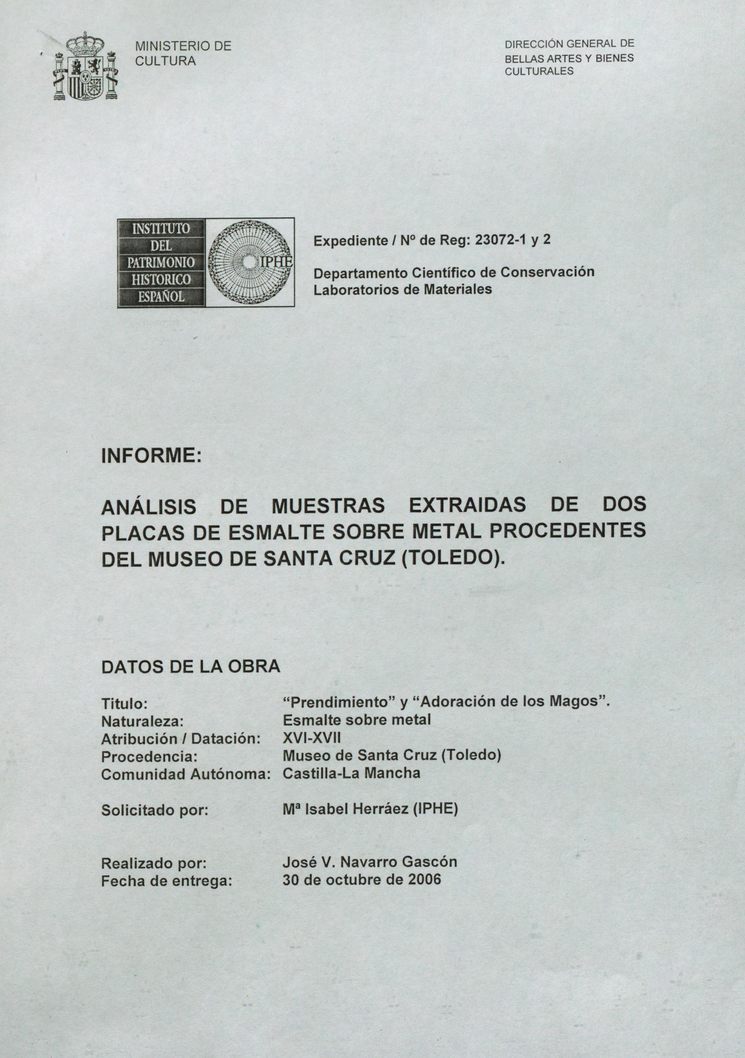 Restauración de dos placas de esmalte sobre cobre que representan "La adoración de los Reyes" y "El prendimiento de Jesús", procedentes del Museo de Santa Cruz de Toledo