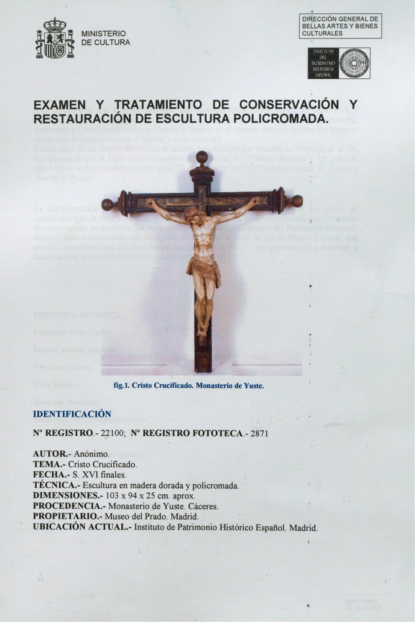 Restauración de una escultura policromada de "Cristo crucificado" del Monasterio de Yuste (Cáceres) procedente del Museo Nacional del Prado (Madrid)