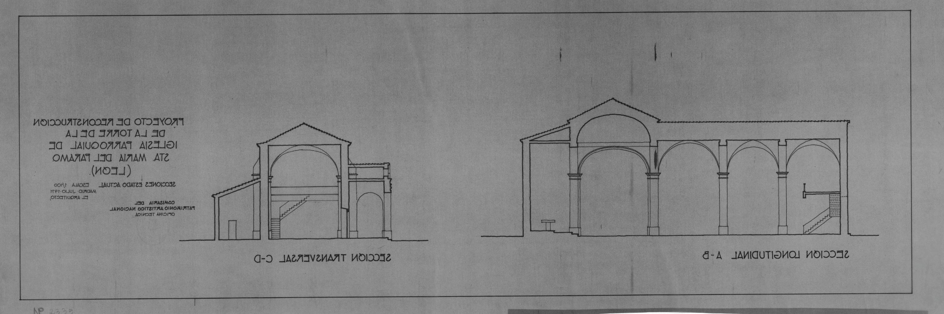 IGLESIA PARROQUIAL DE SANTA MARIA DEL PARAMO: SECCION LOGITUDINAL A-B Y TRANSVERSAL C-D