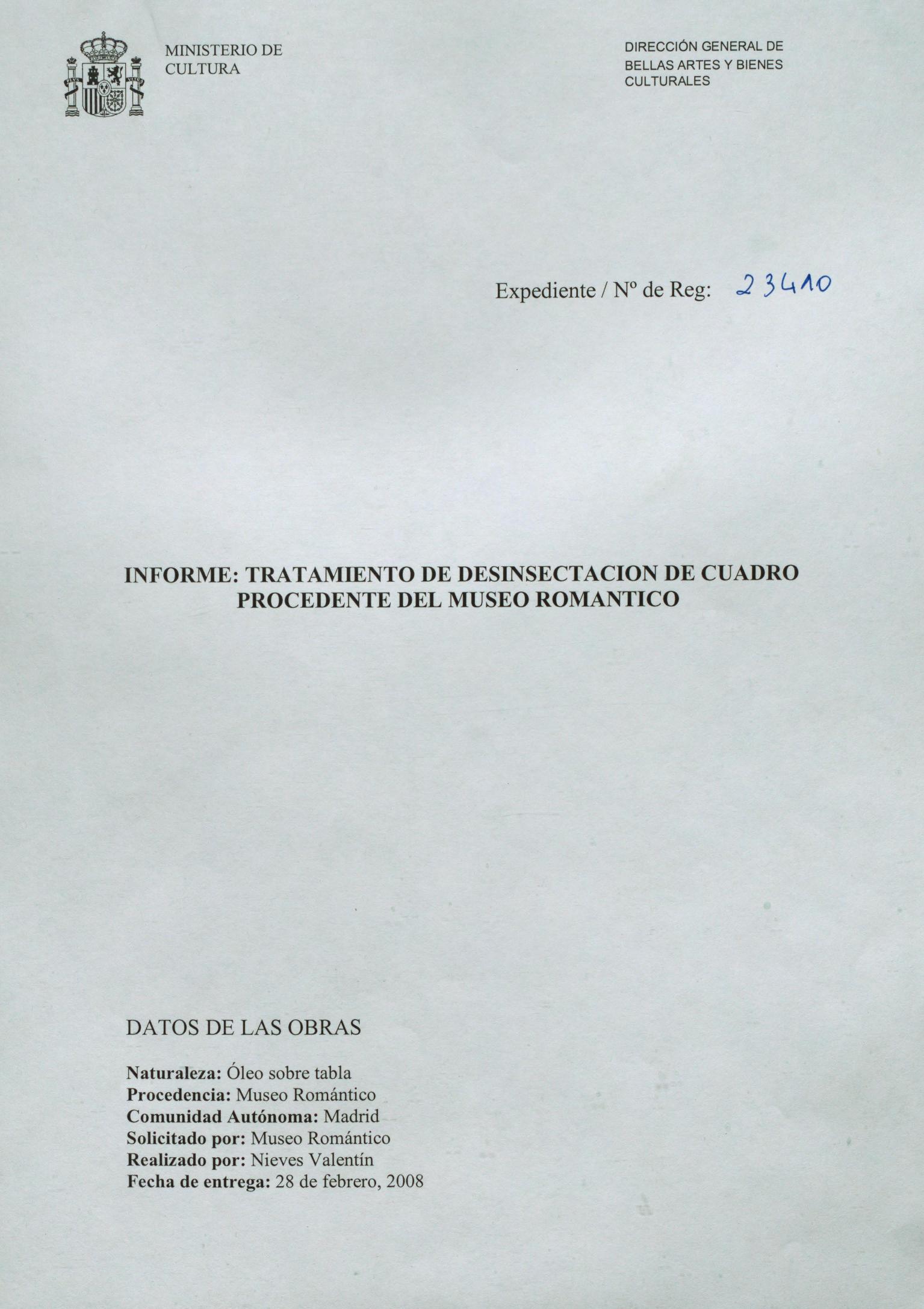 Informe de la desinsectación de la tabla "Auto de Fe", de Eugenio Lucas Velázquez, procedente del Museo del Romanticismo (Madrid)