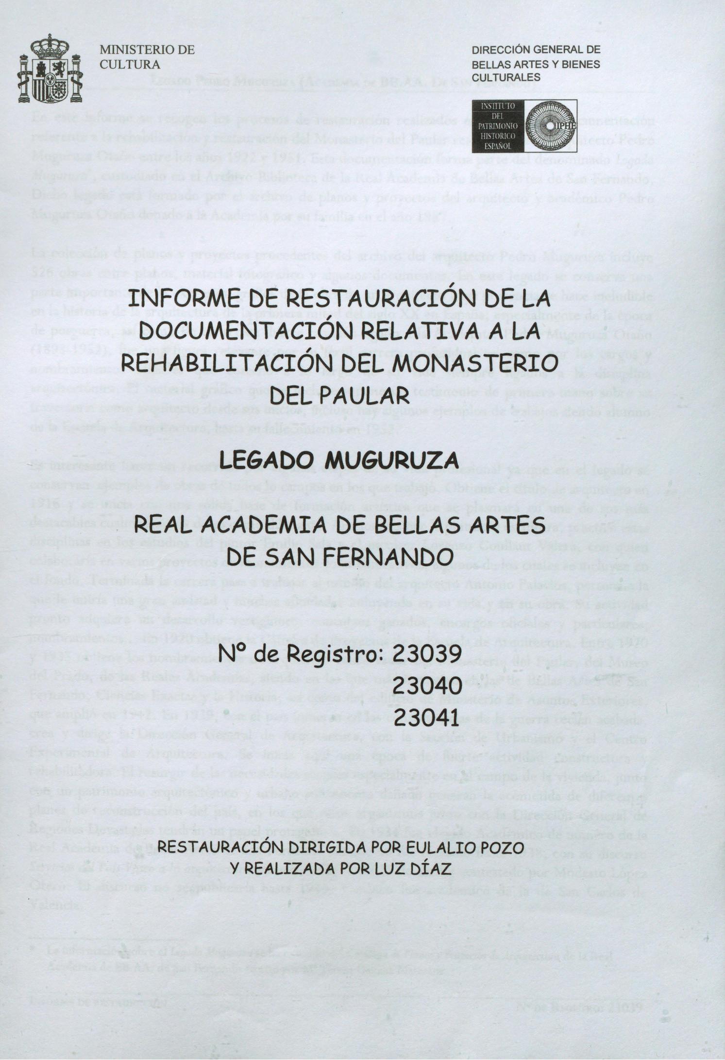 Restauración de dibujos, planos y fotografías del Monasterio de El Paular pertenecientes al Legado Muguruza, procedentes de la Real Academia de Bellas Artes de San Fernando (Madrid)