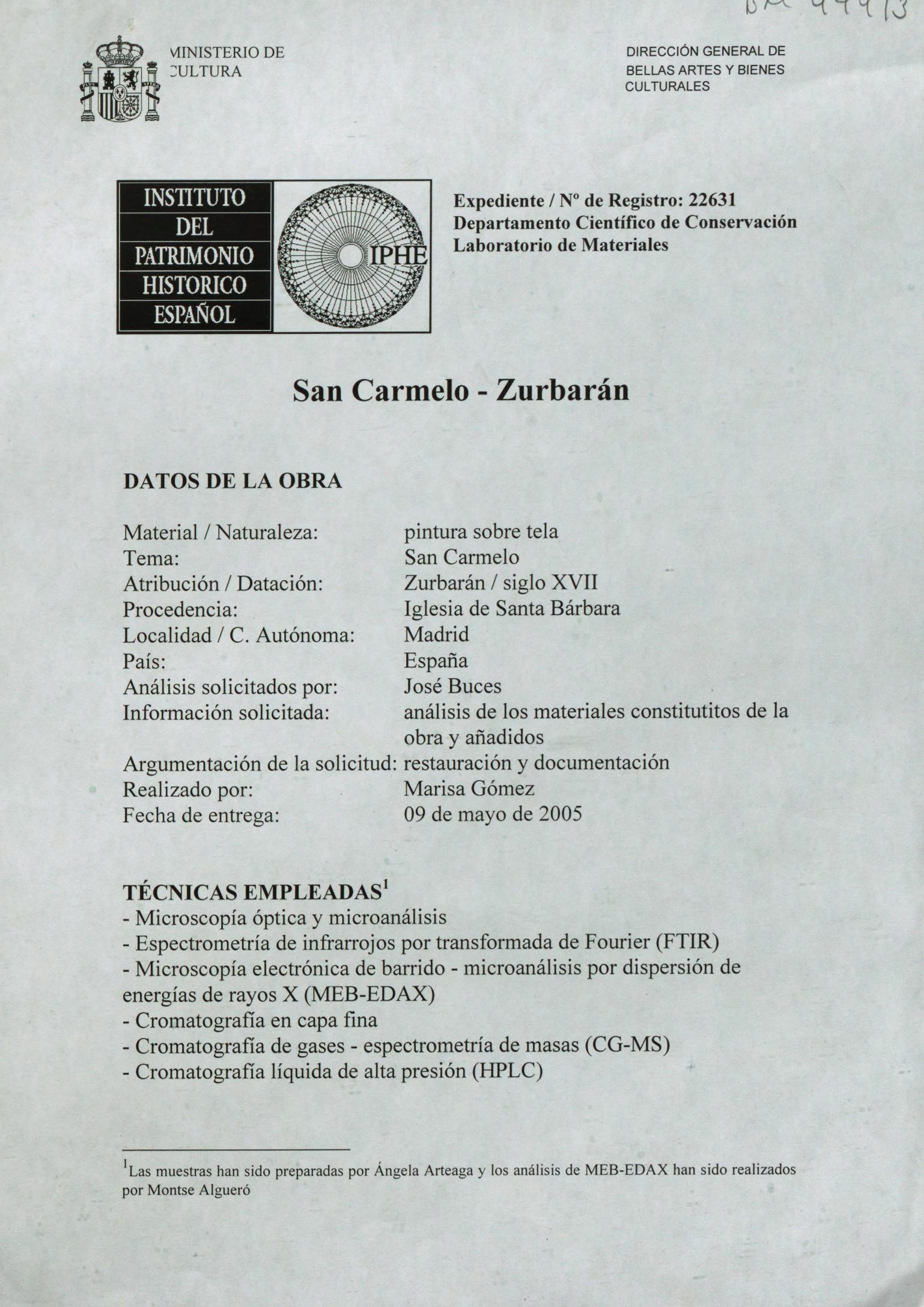 Restauración del lienzo "San Carmelo", de Francisco de Zurbarán, procedente de la Iglesia de Santa Bárbara de las Salesas Reales (Madrid)