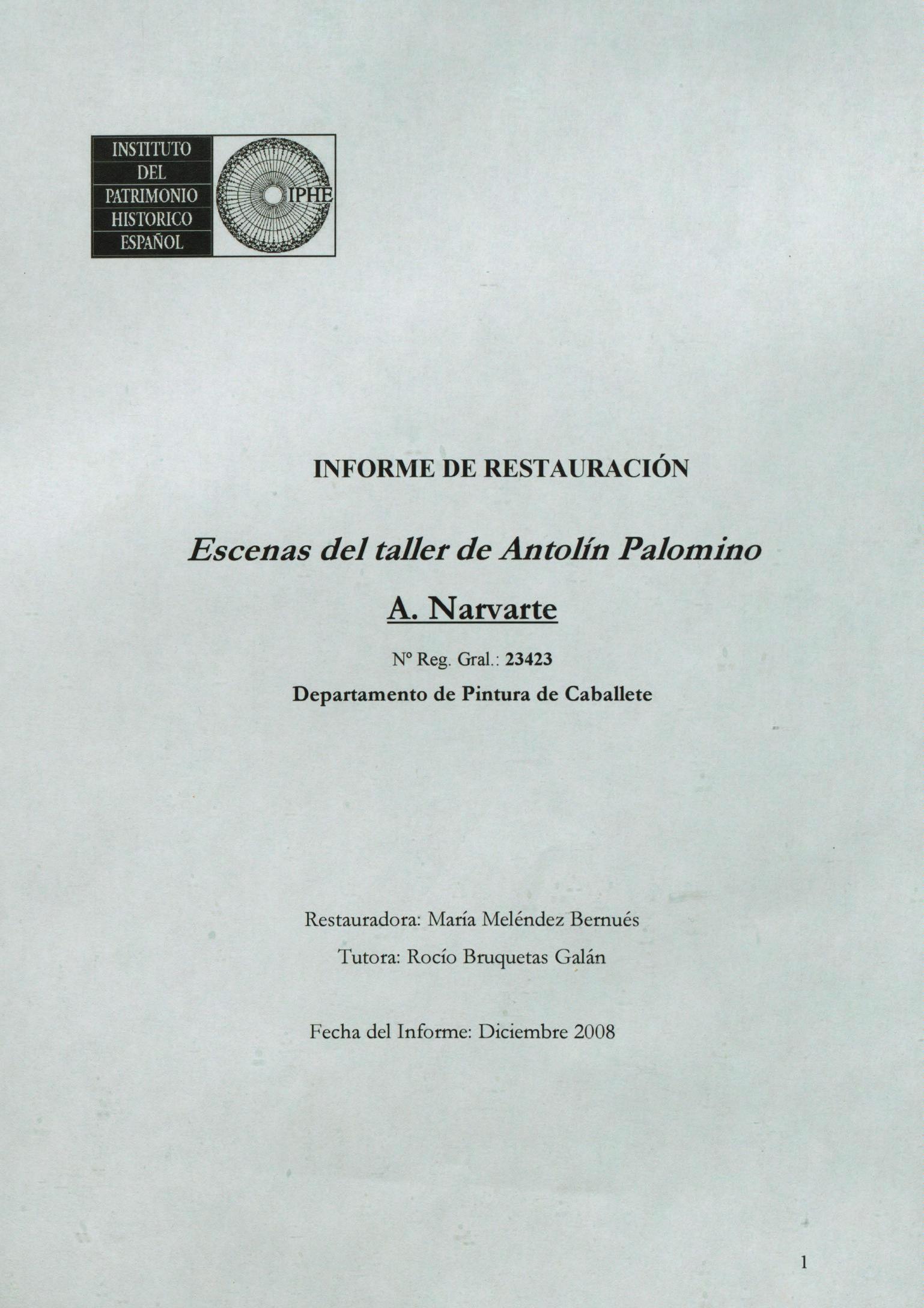 Restauración del óleo "Escenas del taller de Antolín Palomino", de Antonio de Narvarte, procedente de la Imprenta Artesanal del Ayuntamiento de Madrid