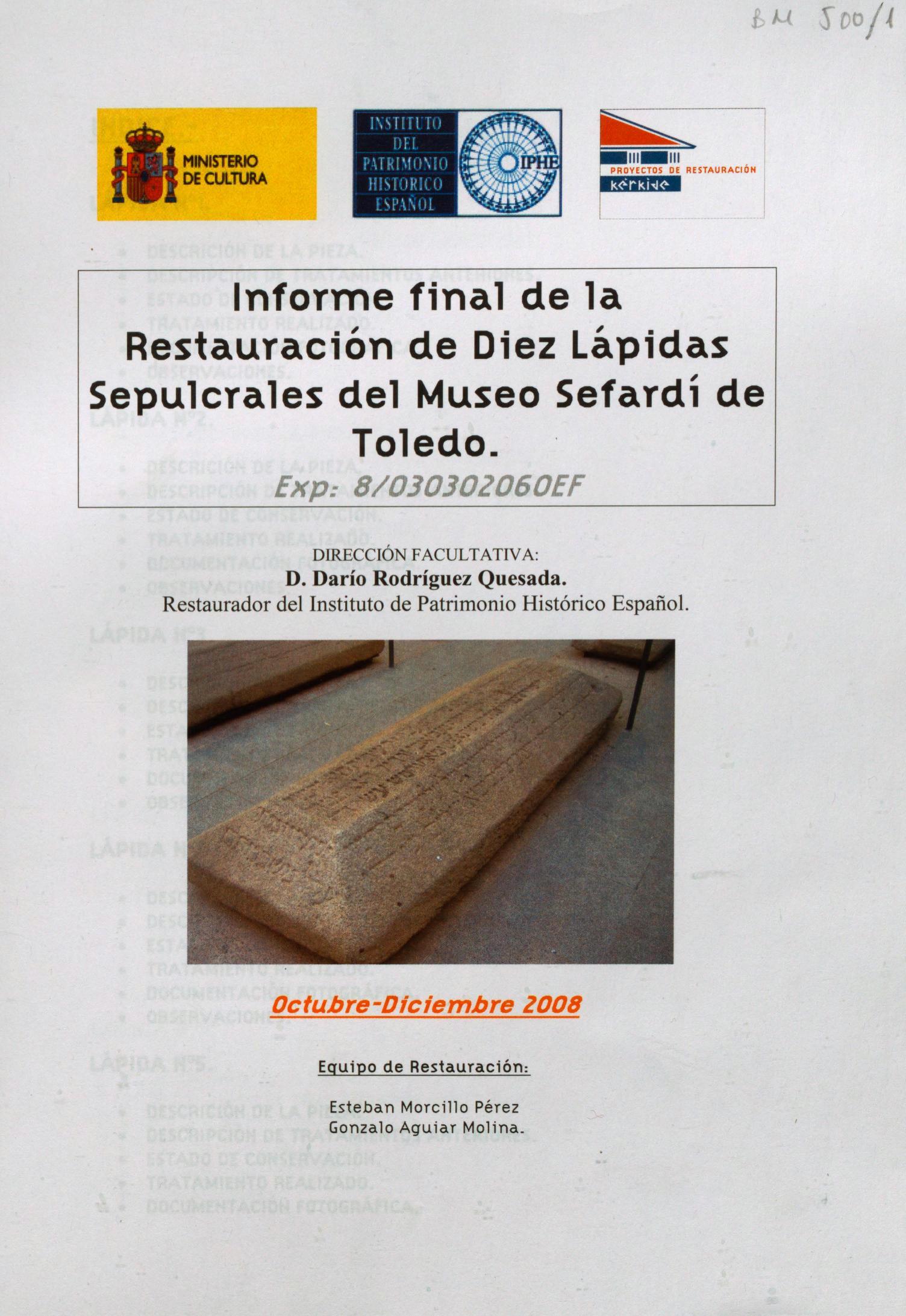 Informe final de la restauración de diez lápidas sepulcrales de la Sinagoga del Tránsito, procedentes del Museo Sefardí (Toledo)
