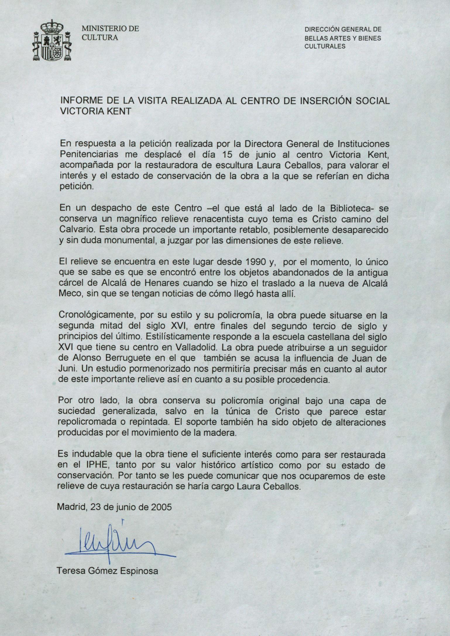 Restauración del relieve policromado "Cristo camino del calvario", procedente del Centro de Inserción Social Victoria Kent de Instituciones Penitenciarias de Madrid