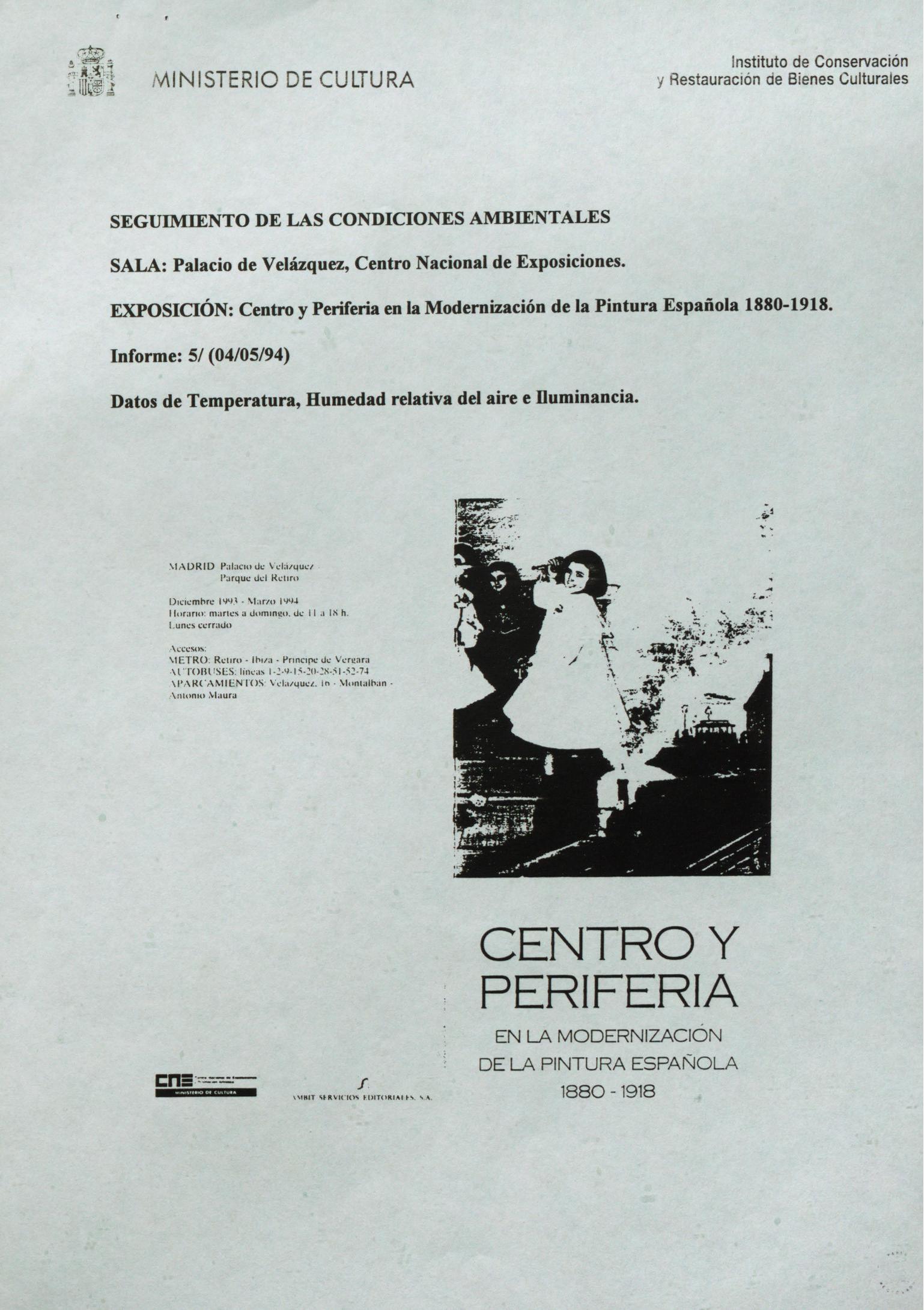 Informe de seguimiento de las condiciones ambientales para la exposición "Centro y periferia en la modernización de la pintura española, 1880-1918", en el Palacio Velázquez del Centro Nacional de Exposiciones de Madrid