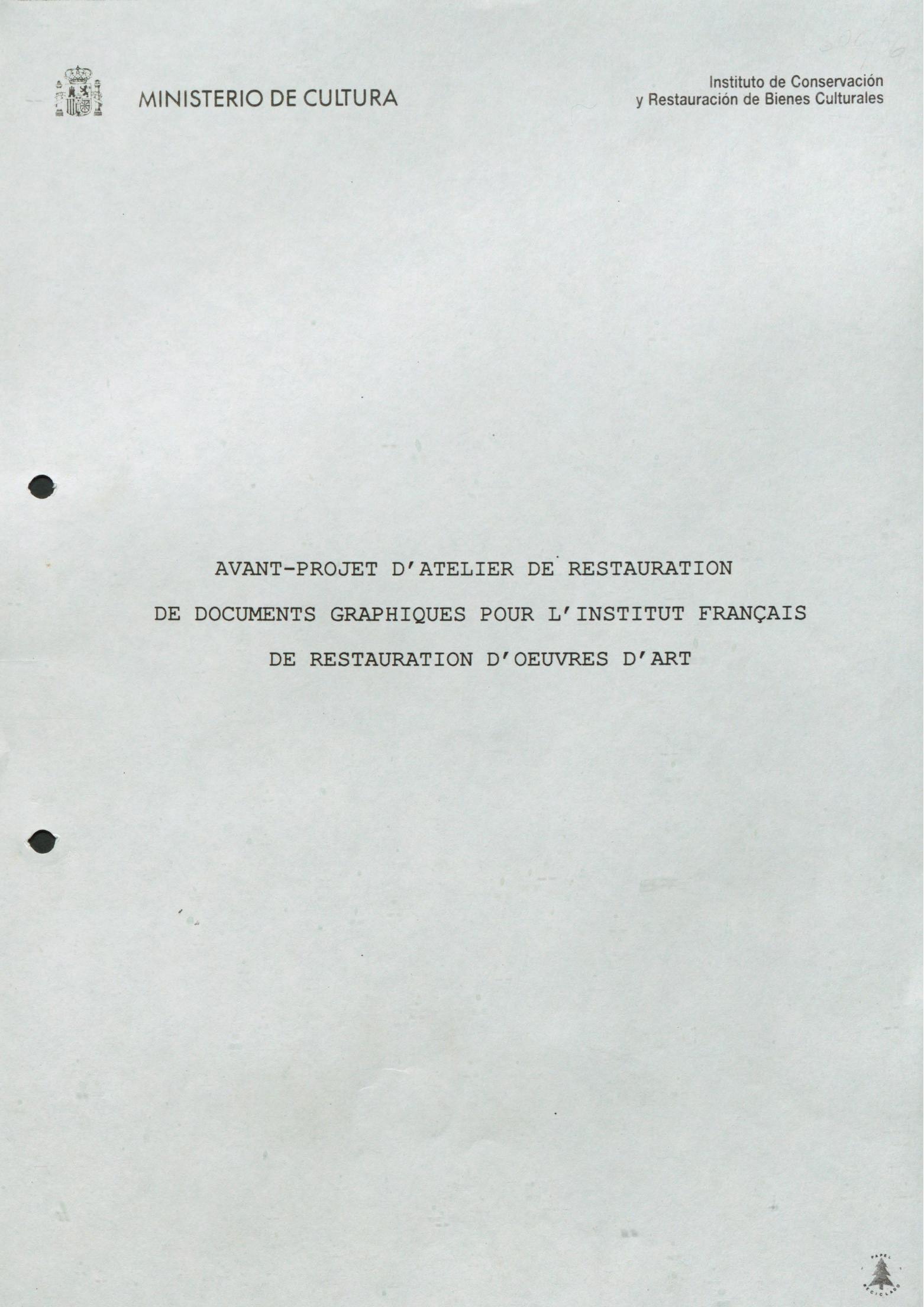 Informe sobre el anteproyecto de creación de un taller de restauración de documentos gráficos para el Instituto Francés de Restauración de Obras de Arte. París (Francia)