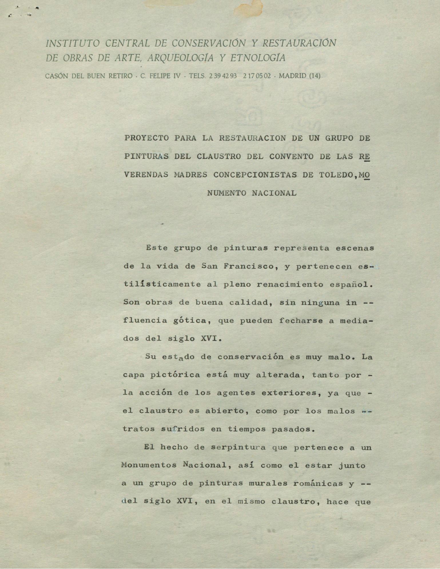 Restauración de las pinturas murales del Convento de las Reverendas Madres Concepcionistas de Toledo