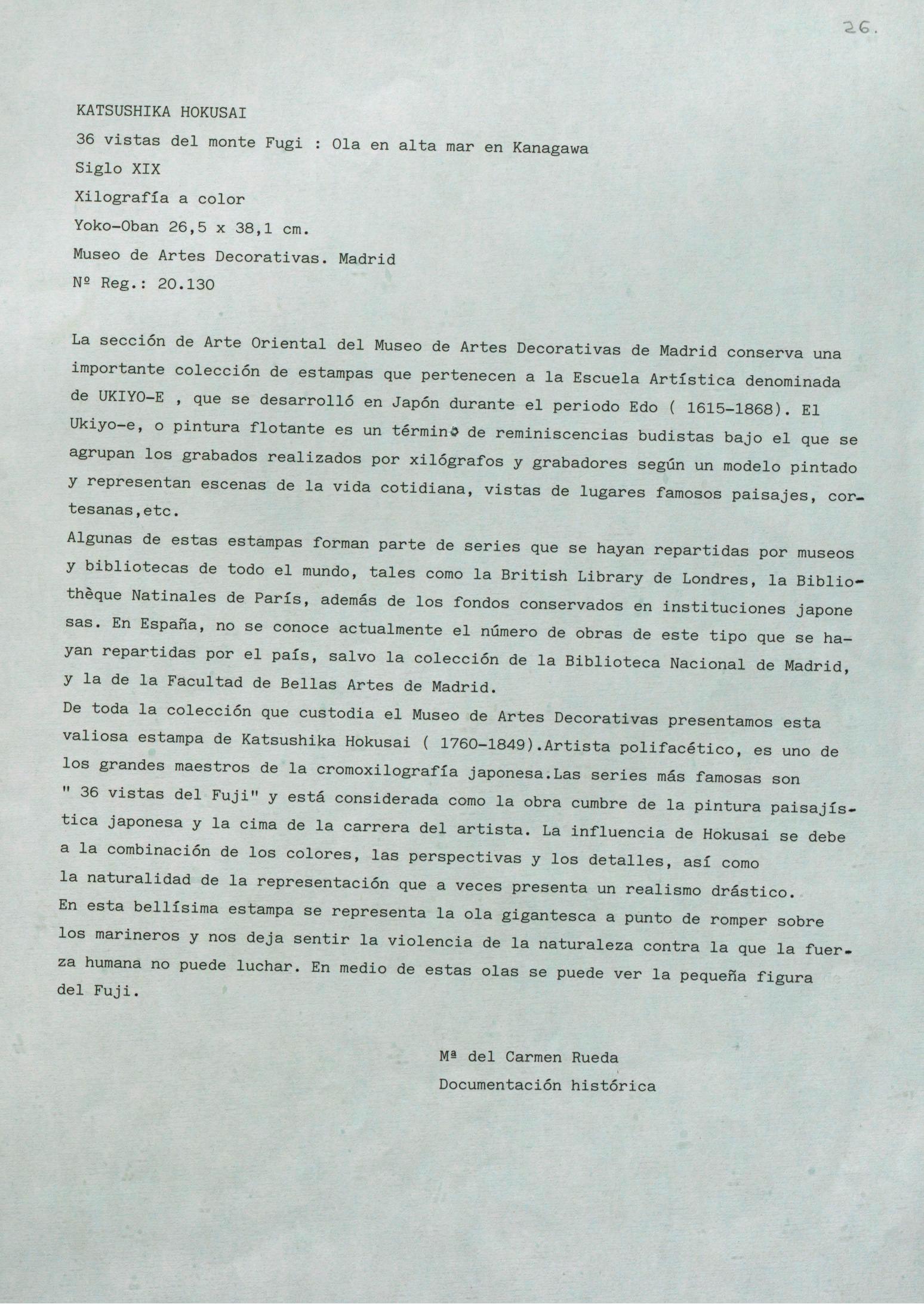 Informe histórico-artístico de la xilografía a color "Ola en alta mar en Kanagawa", de Katsushika Hokusai, del Museo Nacional de Artes Decorativas (Madrid)