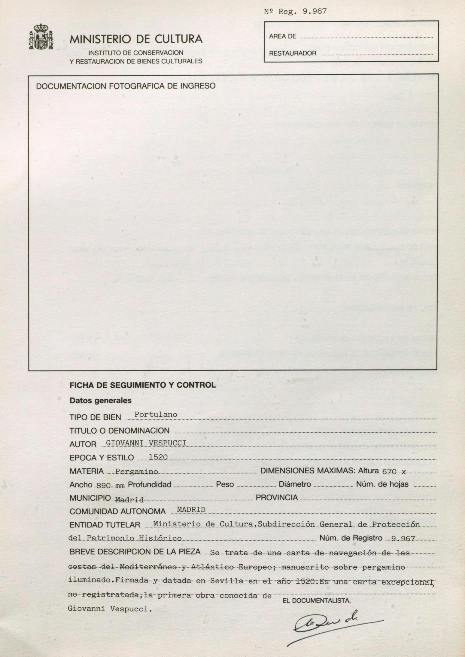 Restauración del manuscrito iluminado sobre pergamino, titulado "Carta de Náutica de Giovanni Vespucci", procedente de la Subdirección General de Protección del Patrimonio Histórico (Madrid).